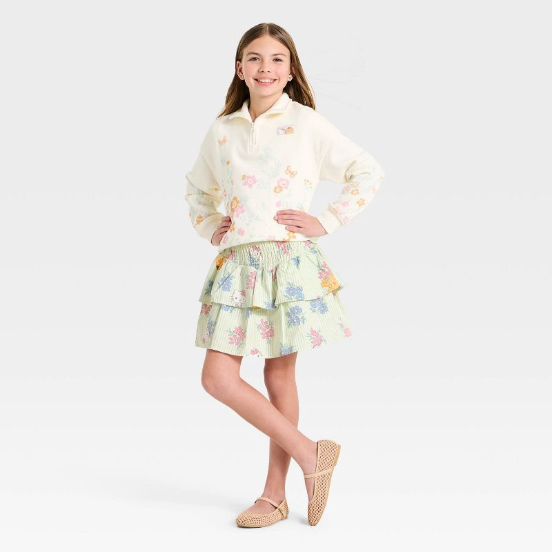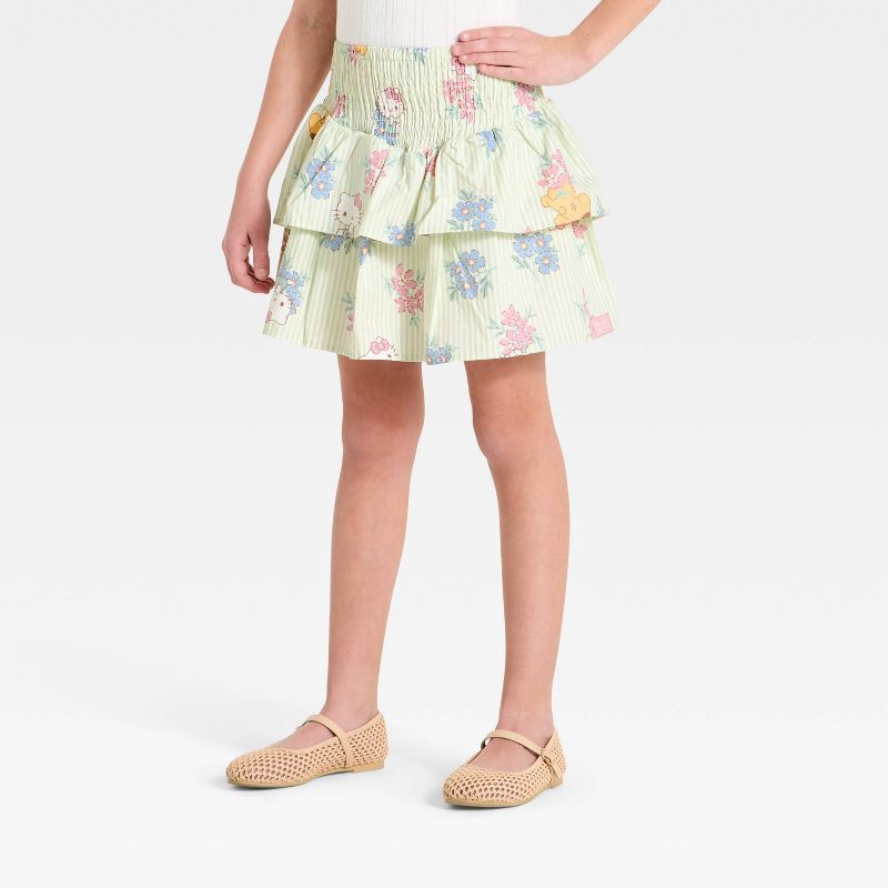 Sanrio Girls' Hello Kitty and Pompompurin Smocked Poplin Skort - Light Green XL