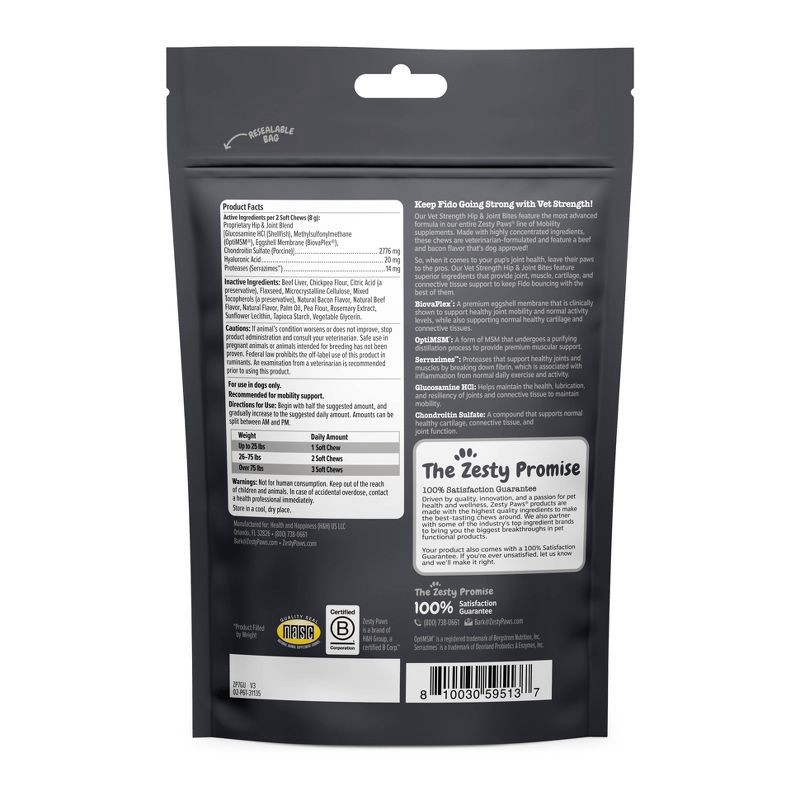 Zesty Paws Vet Strength Bacon and Beef Flavor Hip and Joint Dog Vitamins and Supplements - 60ct