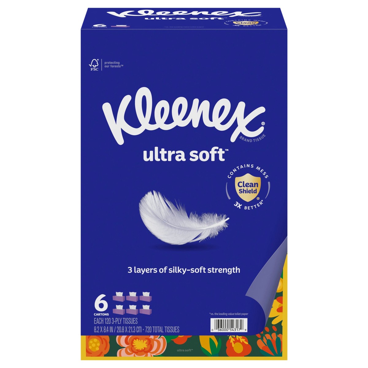 Kleenex Ultra Soft Facial Tissues, 6 Flat Boxes, 120 Tissues per Box, 3-Ply (720 Total Tissues)