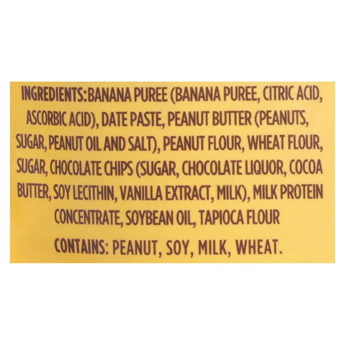 Banana Puree (Banana Puree, Citric Acid, Ascorbic Acid), Date Paste, Peanut Butter (Peanuts, Sugar, Peanut Oil and Salt), Peanut Flour, Wheat Flour, Sugar, Chocolate Chips (Sugar, Chocolate Liquor, Co…