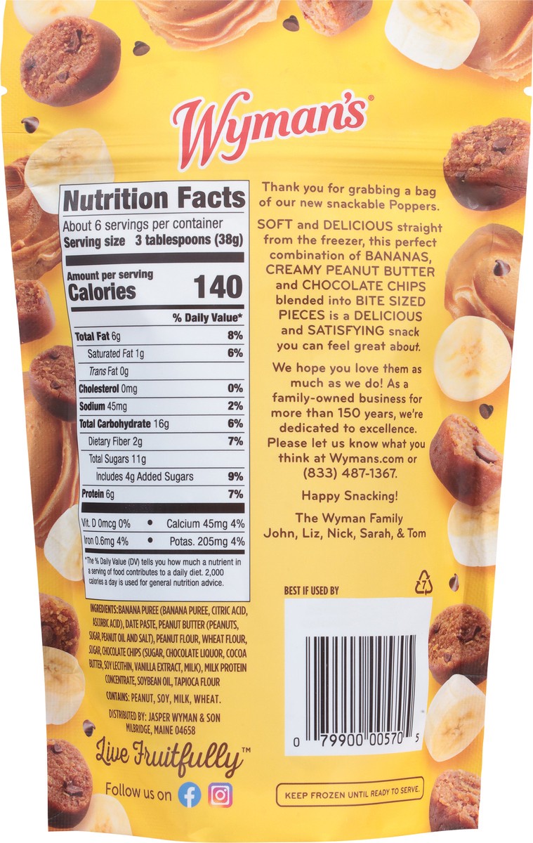 Wyman's Fruit & Peanut Butter Poppers, Banana, Peanut Butter & Chocolate Chip
