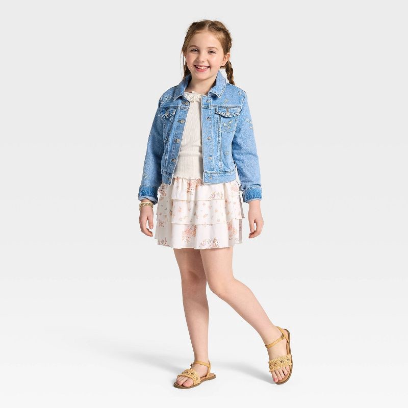 Girls' Tiered Floral Min Skirt - Cat & Jack™ Cream XL