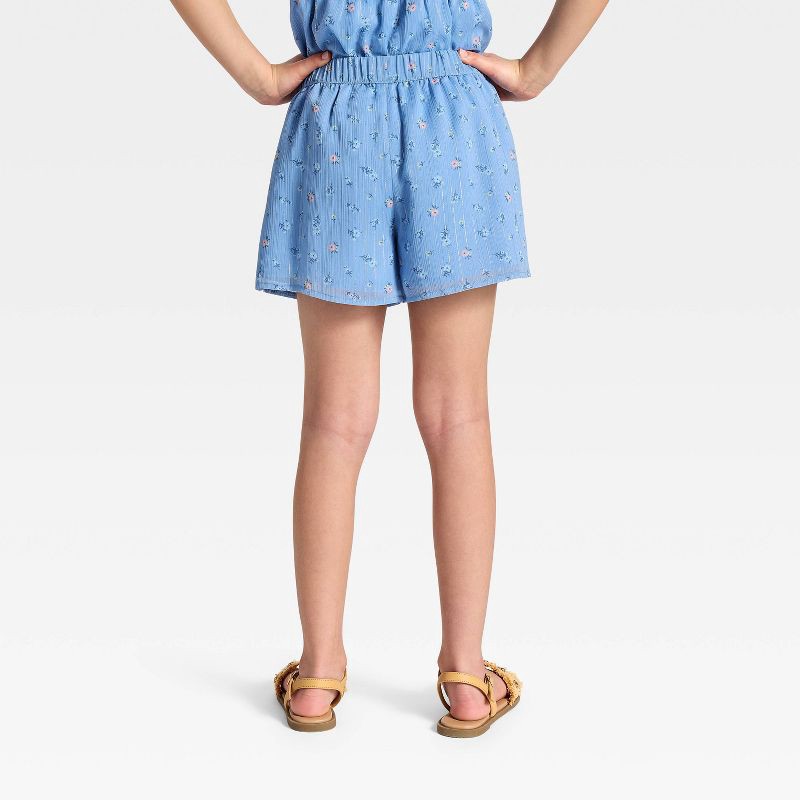 Girls' Lurex Chiffon Floral Pull-on Shorts - Cat & Jack™ Blue S