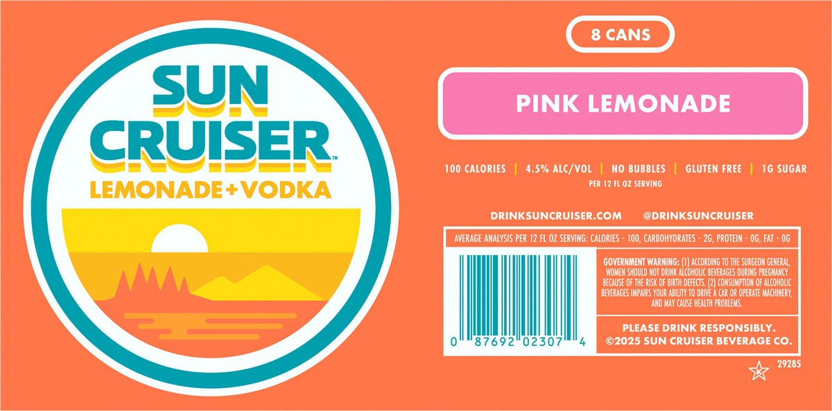 Sun Cruiser Pink Lemonade Vodka, 8 pk 12 fl oz Cans