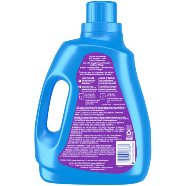 Contains cationic surfactant and fragrance. For a full ingredient list, please visit us at www.snuggle.com.
