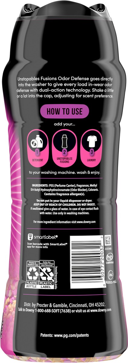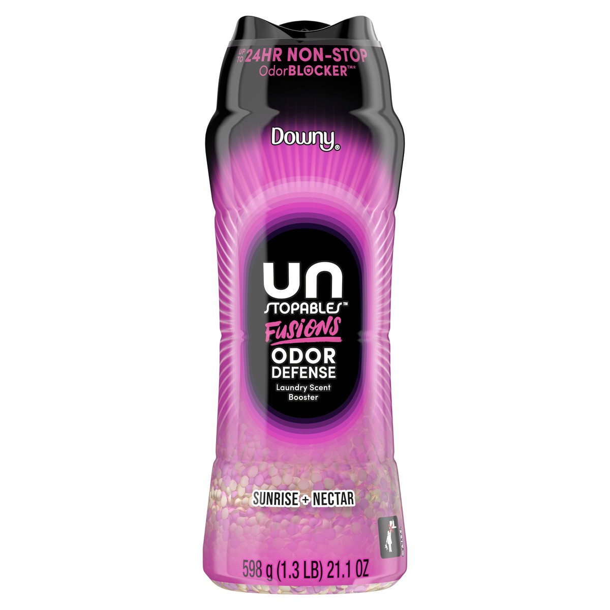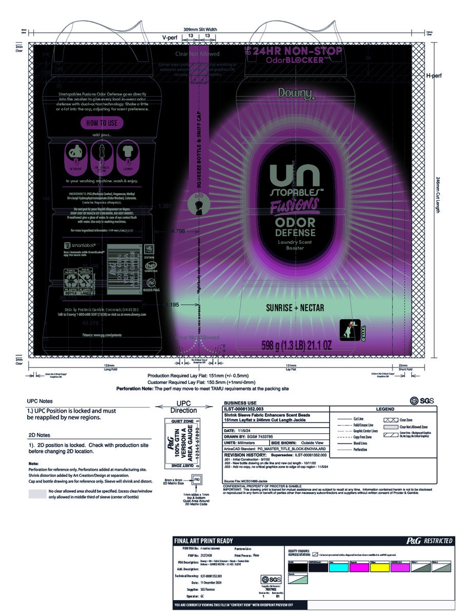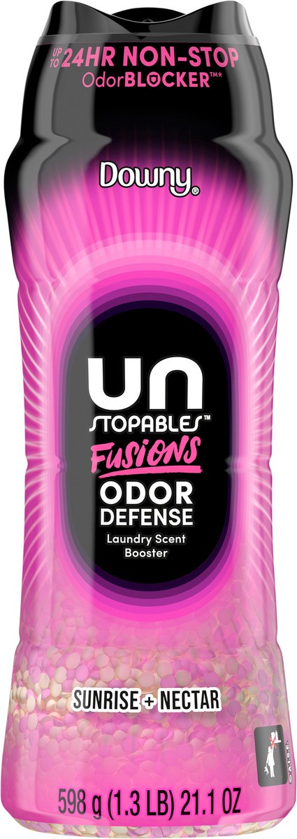 - Includes one 21.1 OZ bottle of Downy Unstopables Fusions Odor Defense In-Wash Laundry Scent Booster Beads in Sunrise + Nectar Scent