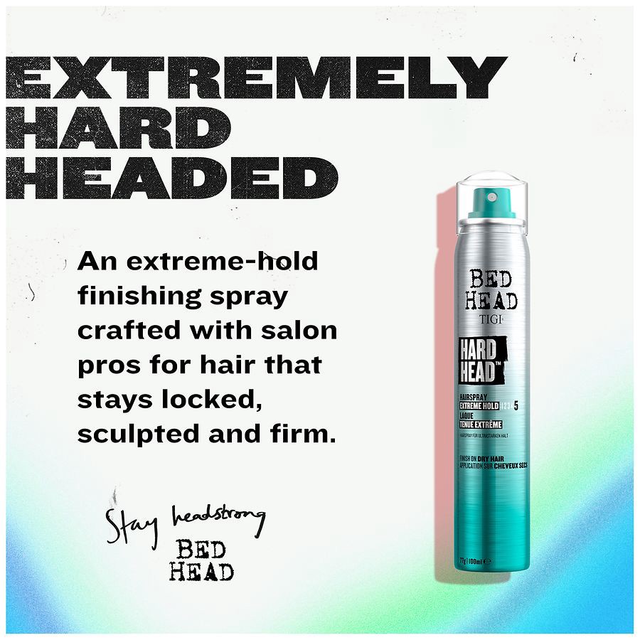 Bed Head's Hard Head Hairspray; new on the outside and just as epic on the inside. An extreme hold formulation, not only designed with, but used by salon professionals. Delivering salon results and sa…