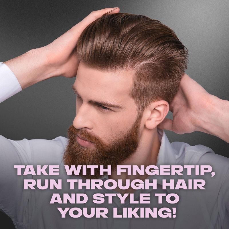 - Just take a fingertip amount of the pomade for hairstyling, then mix, rake, and comb for a sleek, classic style