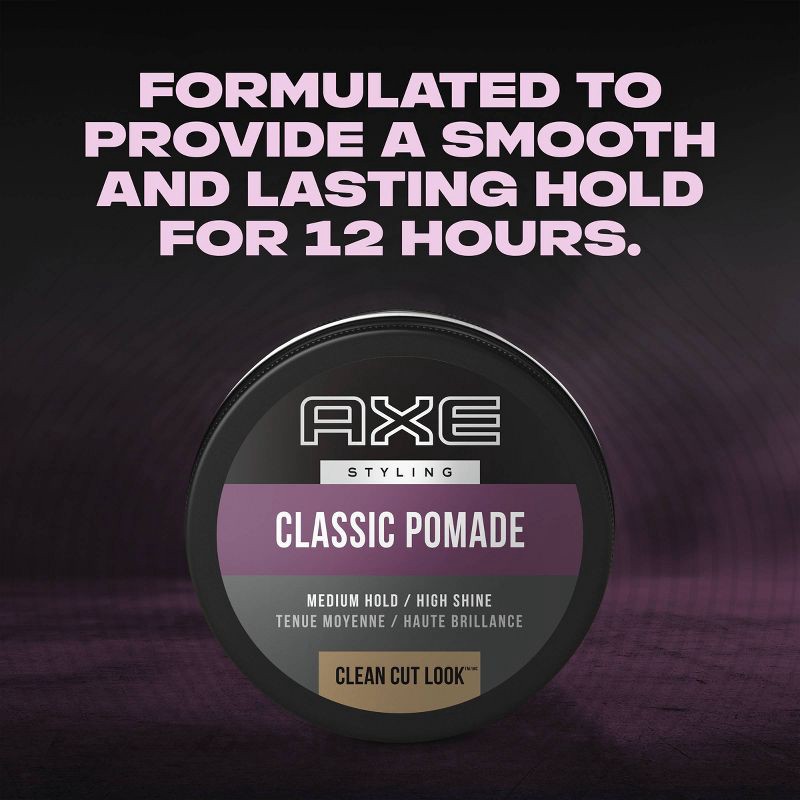 - AXE Clean Cut Look Classic Hair Pomade delivers shine and a medium hold
