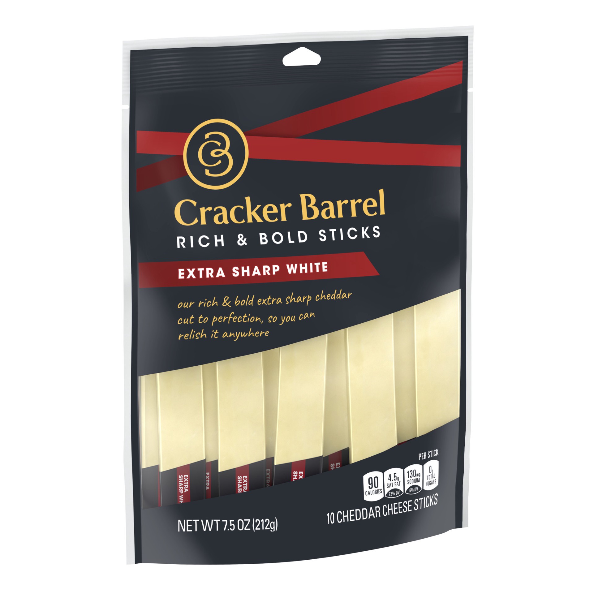 - One 7.5 oz pack of Cracker Barrel Extra Sharp White Cheddar Cheese Sticks