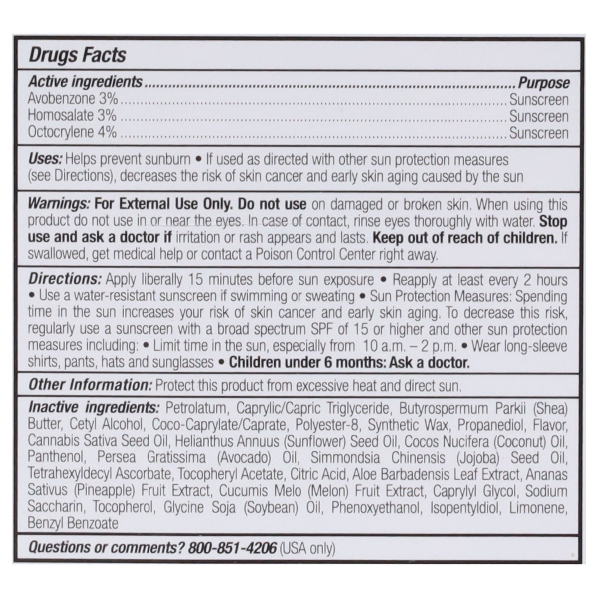 Active Ingredients: Avobenzone (3 %), Sunscreen; Homosalate (3 %), Sunscreen; Octocrylene (4 %), Sunscreen. Inactive Ingredients: Petrolatum, Caprylic/Capric Triglyceride, Butyrospermum Parkii (Shea) …
