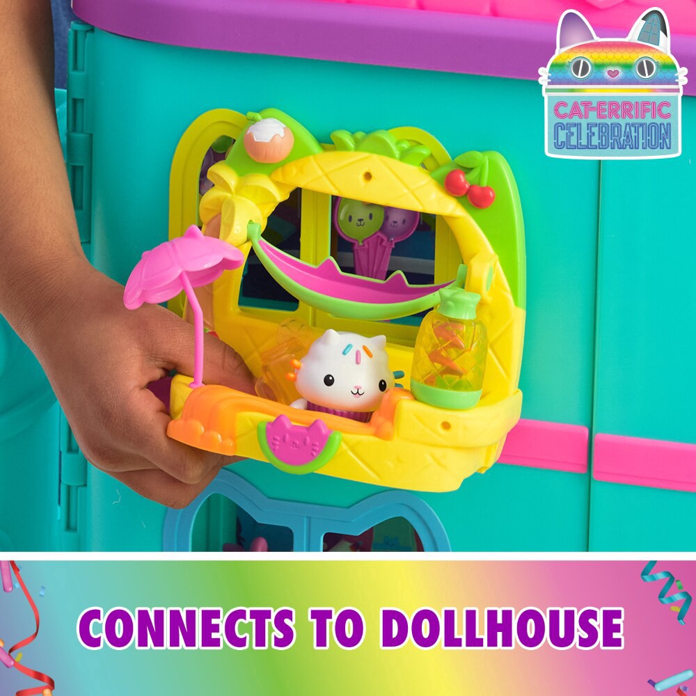 Step into the magical world of Gabby's Dollhouse with Cakey Cat's Fruit Smoothie Party Balcony Playset! Featuring a Cakey Cat toy figure, dollhouse furniture, and 6 dollhouse accessories, including a …