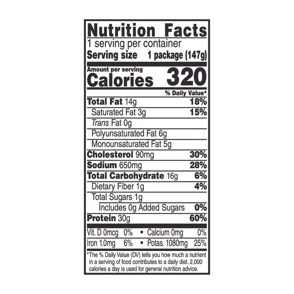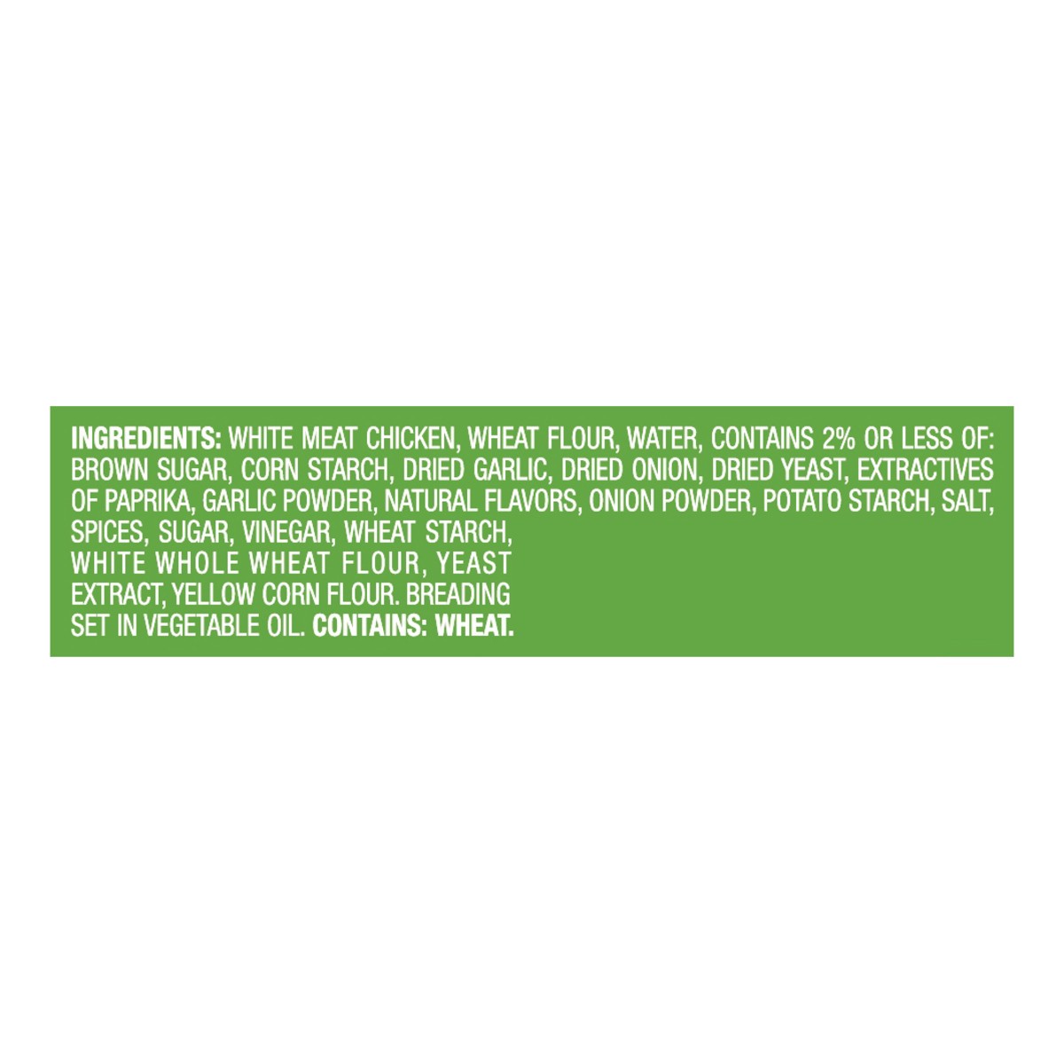 White Meat Chicken, Wheat Flour, Water, Contains 2% or Less of: Brown Sugar, Corn Starch, Dried Garlic, Dried Onion, Dried Yeast, Extractives of Paprika, Garlic Powder, Natural Flavors, Onion Powder, …