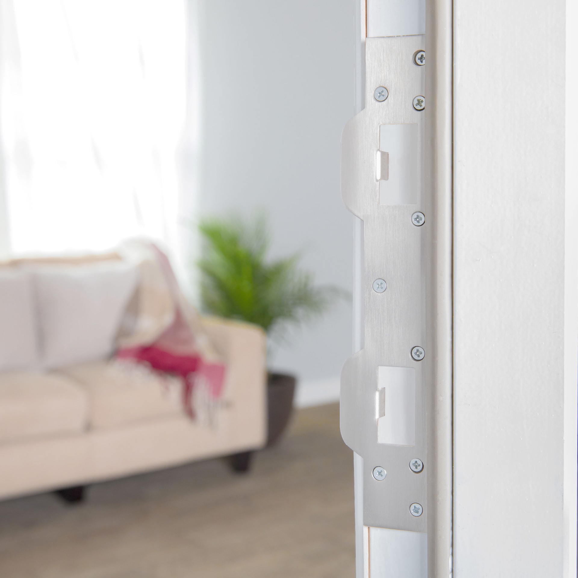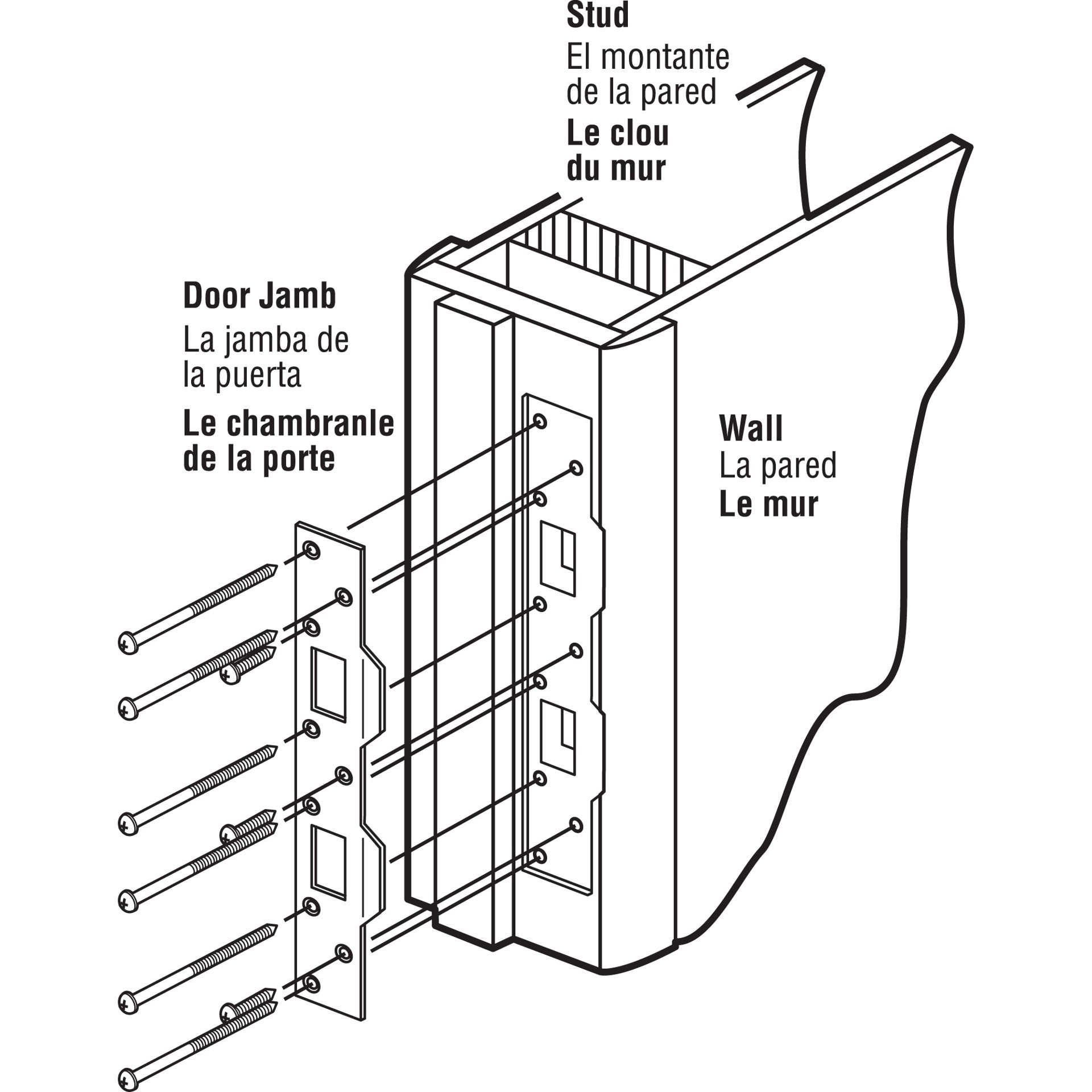 Six 3 inch long screws provided for maximum security. For doors with deadbolt and handle set on 5-1/2 inch to 6 inch hole centers. Provides maximum security. Replaces standard latch and deadbolt strikā¦