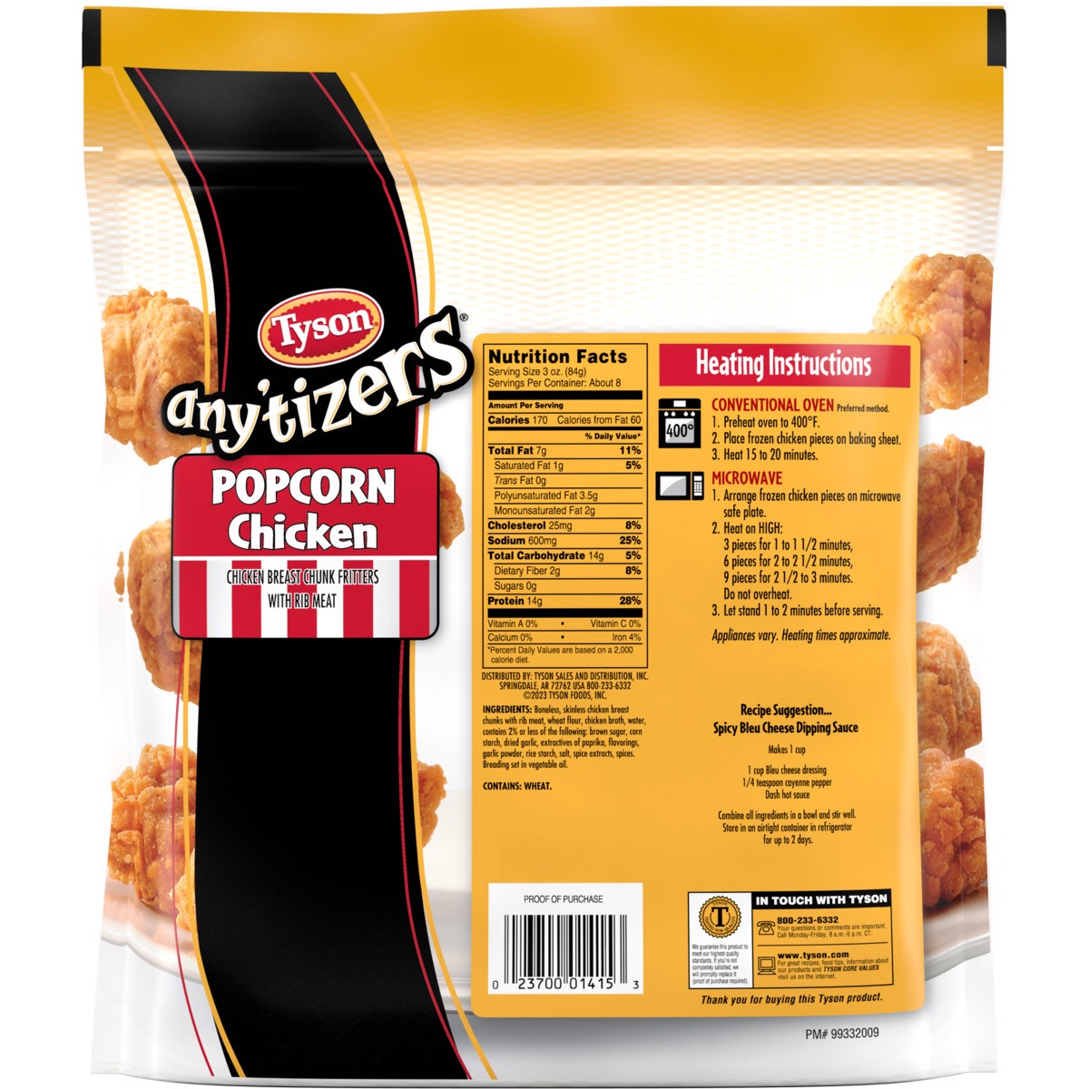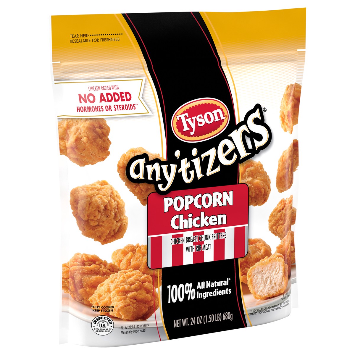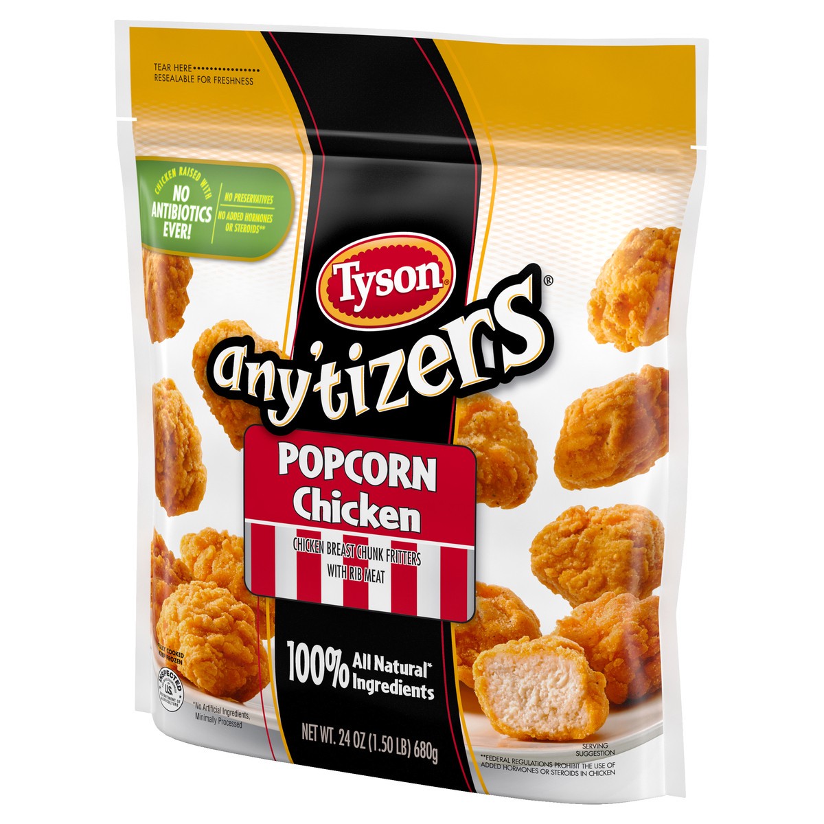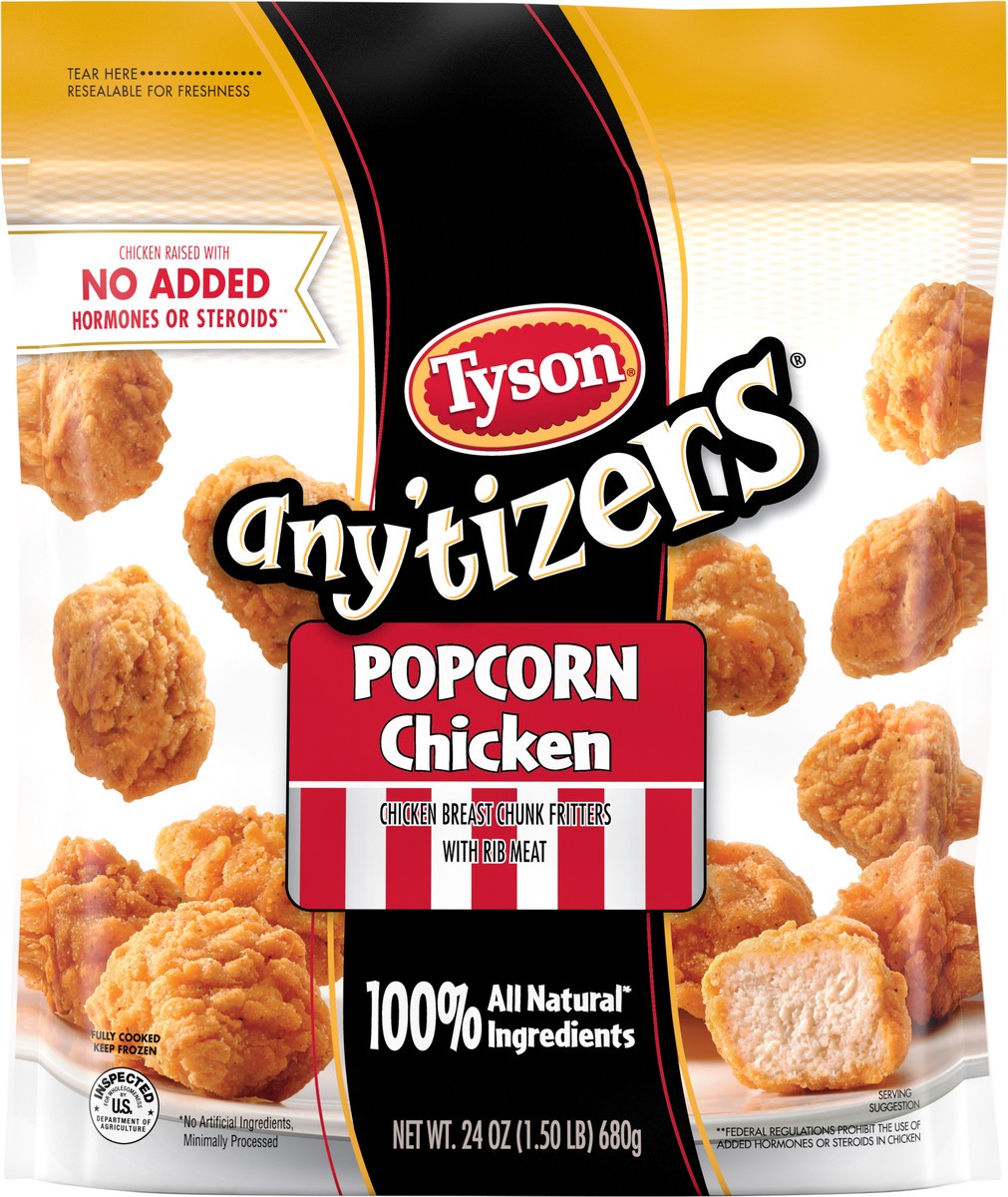 Take snack time to the next level with Tyson Any’tizers Popcorn Chicken. Tyson bite sized breaded chicken bites are made with 100% all natural* white meat chicken, then breaded and seasoned to perfect…