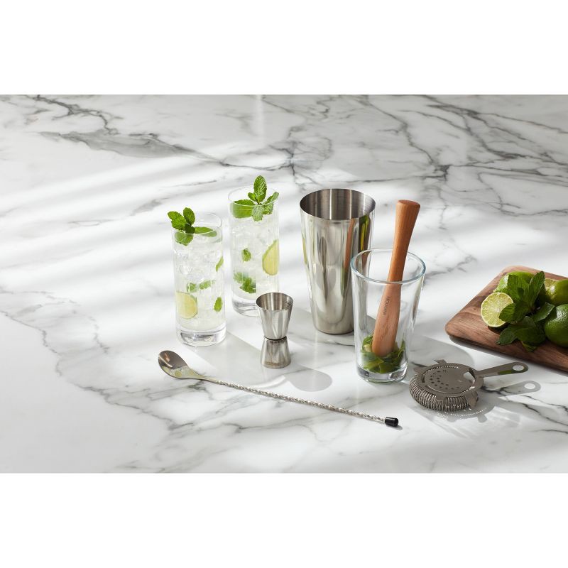 Includes: Muddler, Stir Stick, Strainer, Shaker, Double Jigger