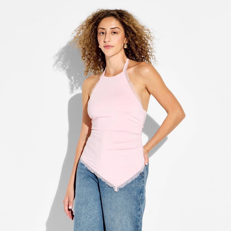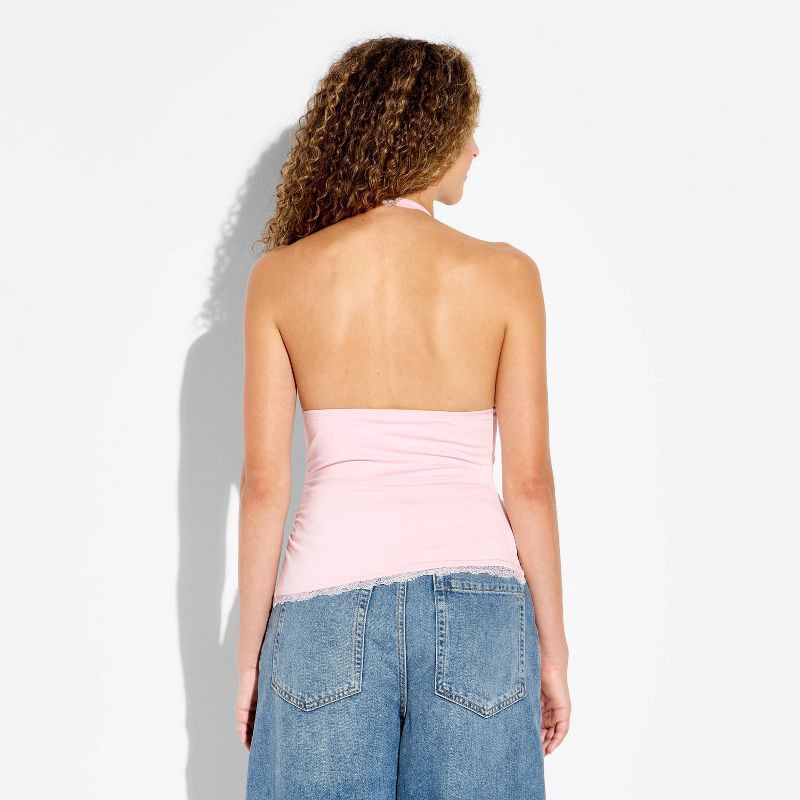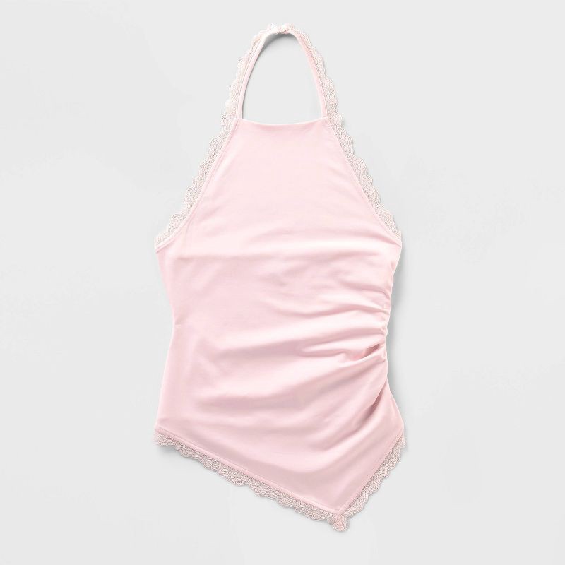 Women's Lace Trim Asymmetrical Halter Top - Wild Fable™ Light Pink XS