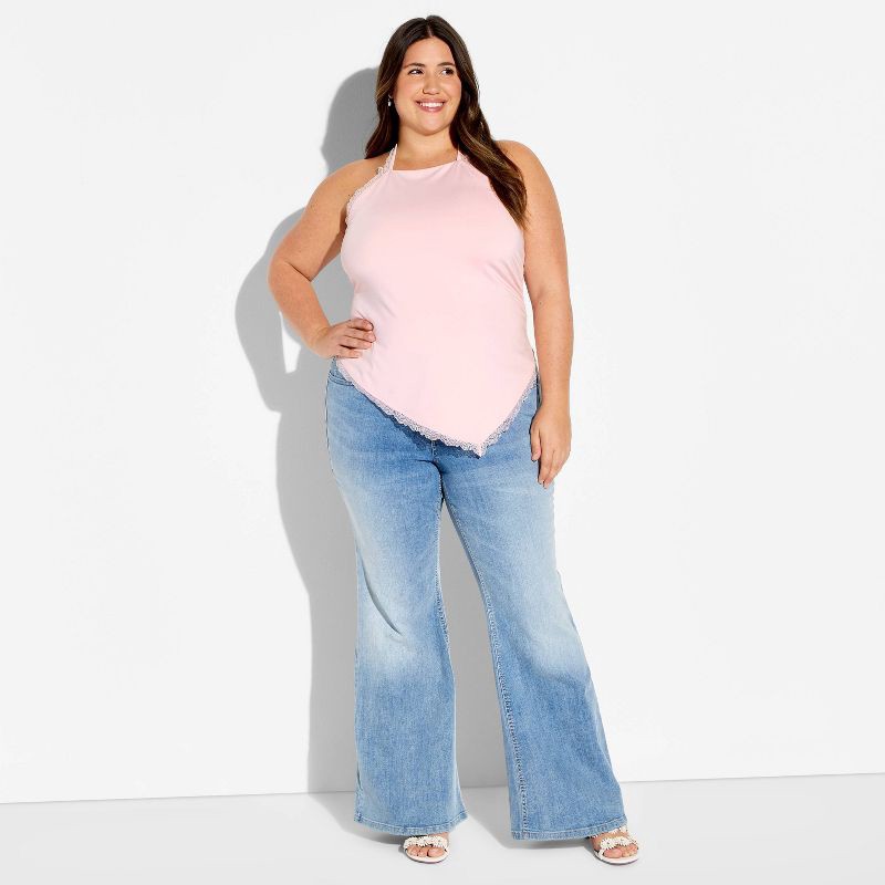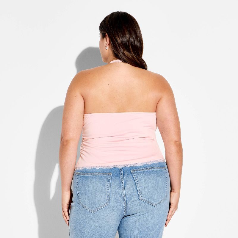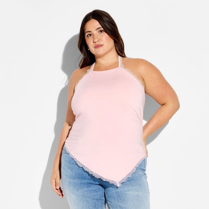 Women's Lace Trim Asymmetrical Halter Top - Wild Fable™ Light Pink XXL