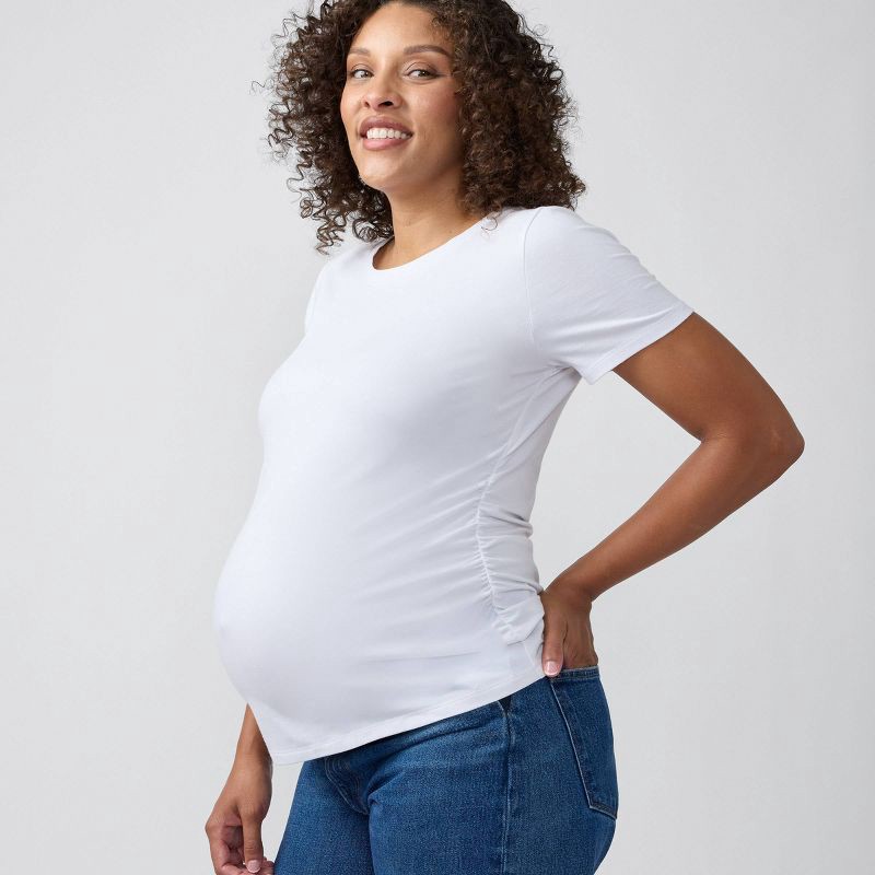 Who knew you had to get pregnant to find the perfect tee? This is the foundational layer that goes with literally everything—most importantly, your growing bump! Side ruching makes sure the relaxed fi…