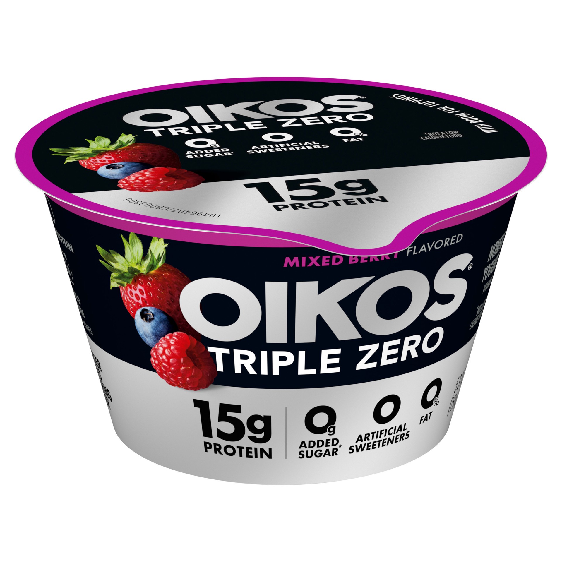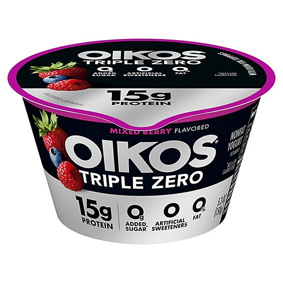 Enjoy epic tastes with Oikos Triple Zero Nonfat Mixed Berry Greek Yogurt, the delicious nonfat Greek yogurt cup with more of what you want and less of what you don''t. Each Oikos Triple Zero yogurt cu…