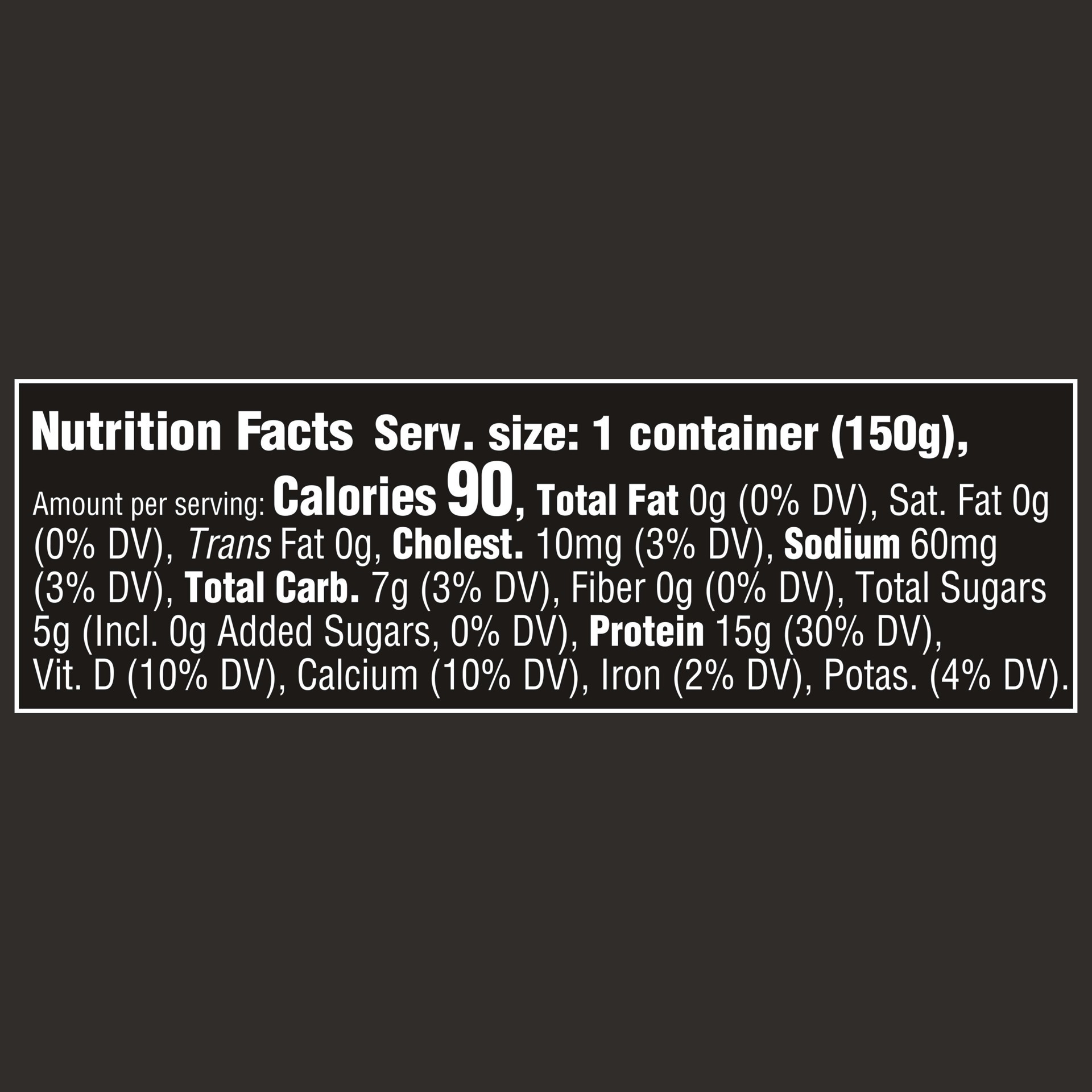 INGREDIENTS: CULTURED GRADE A NON FAT MILK; WATER; NATURAL FLAVORS; CONTAINS LESS THAN 1% OF TAPIOCA STARCH; VEGETABLE JUICE CONCENTRATE (FOR COLOR); STEVIA LEAF EXTRACT; LEMON JUICE CONCENTRATE; SEA …