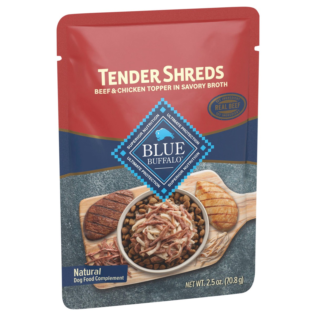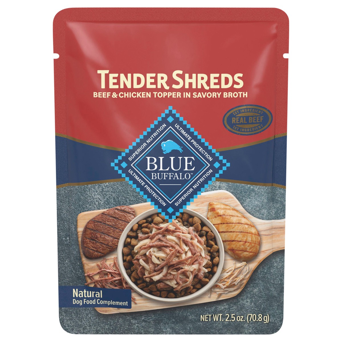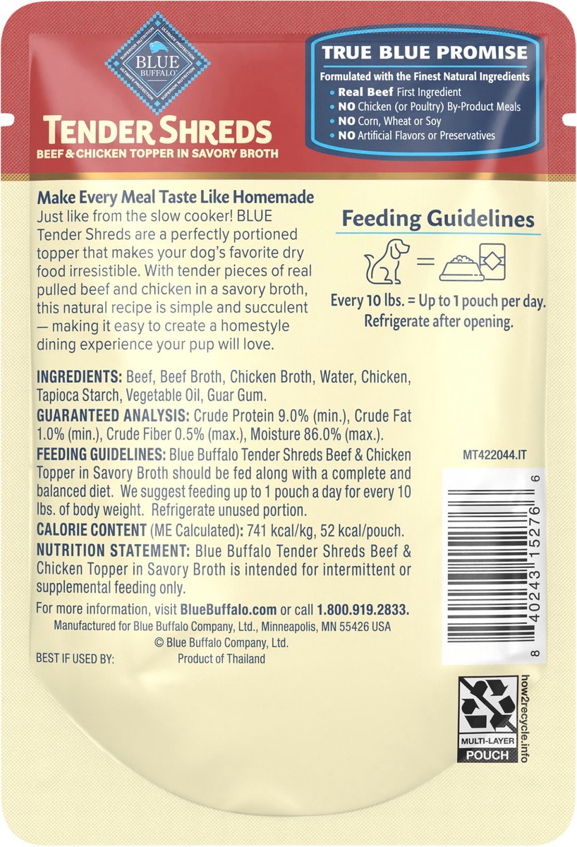 Blue Buffalo Blue Tender Shreds Natural Beef & Chicken Topper in Savory Broth Dog Food Complement 2.5 oz