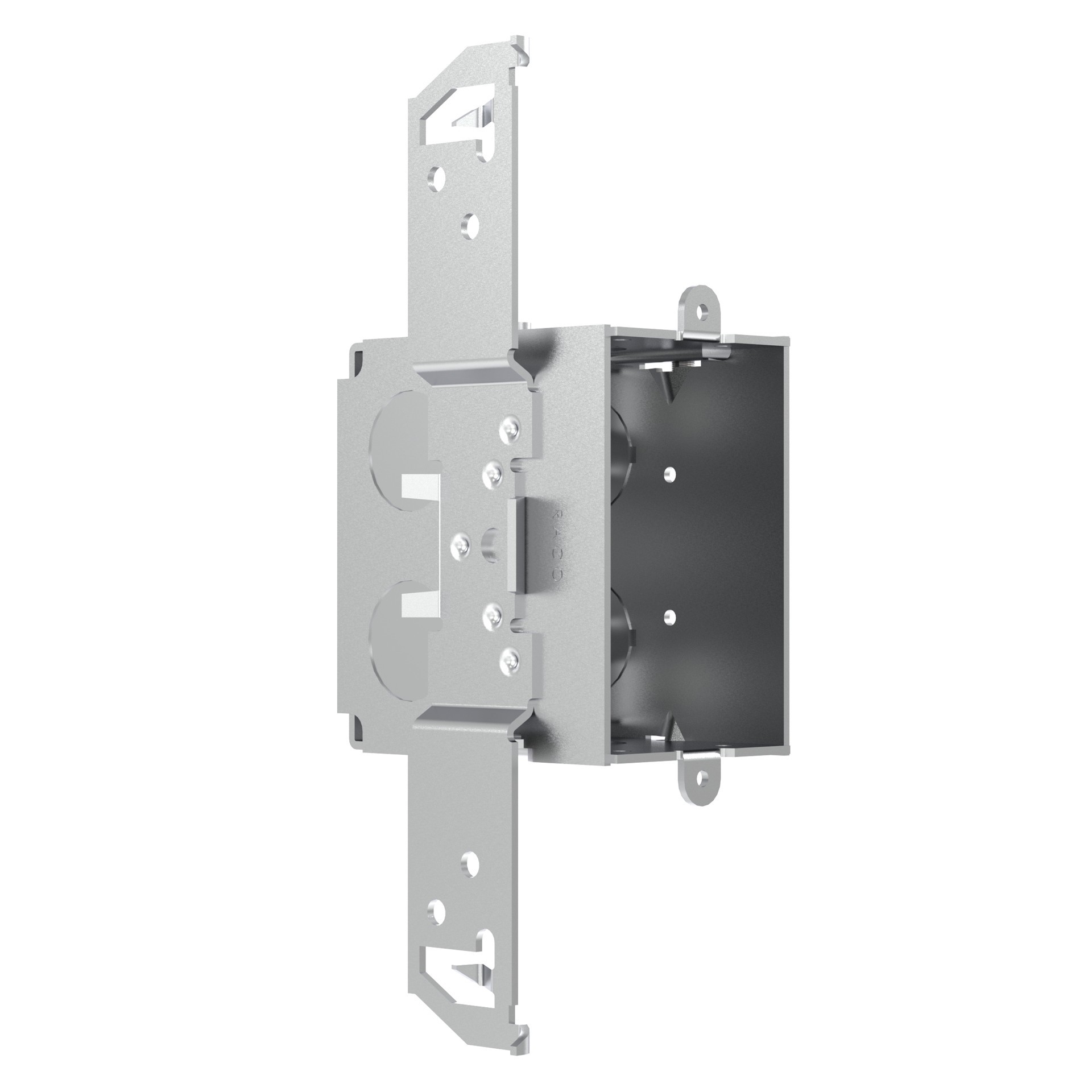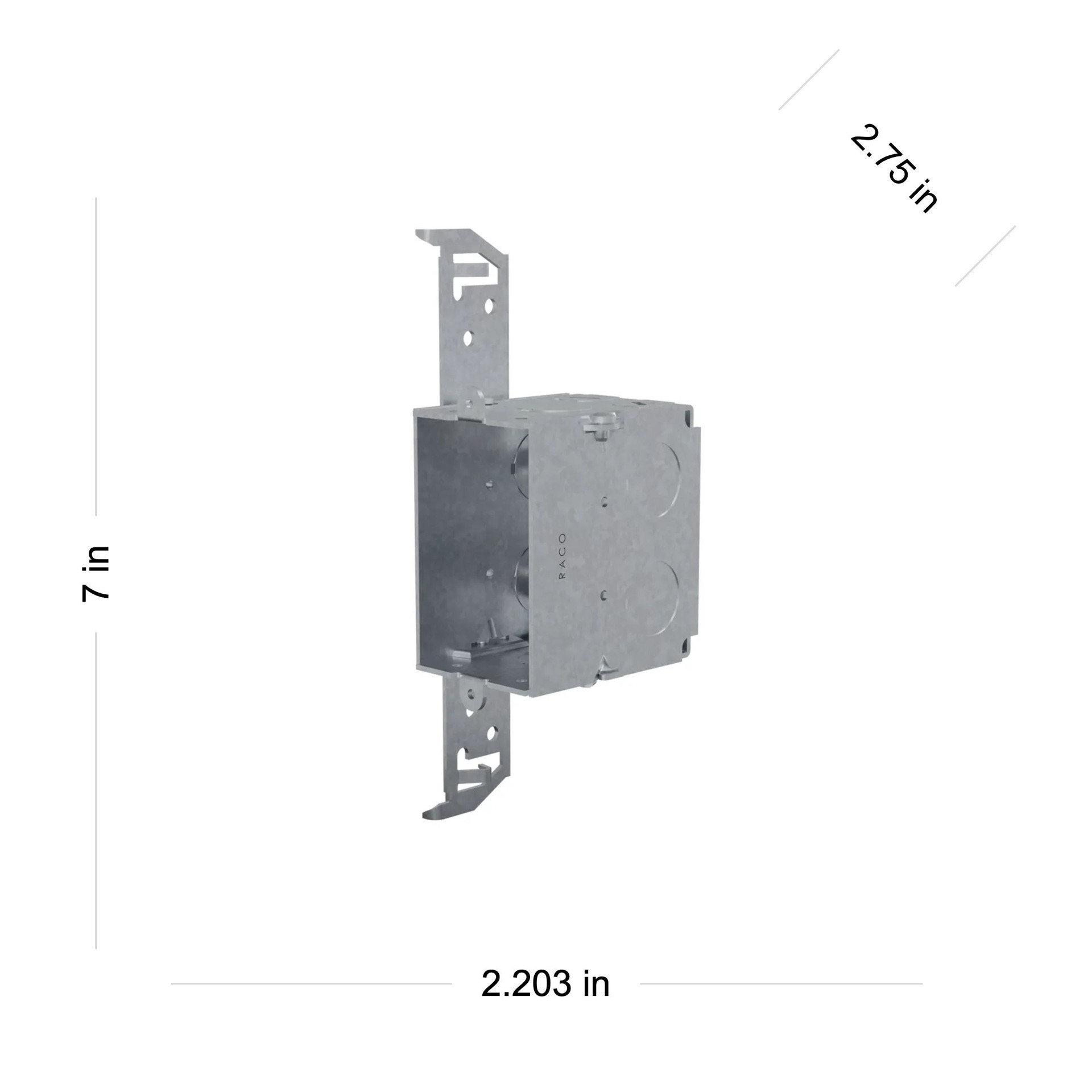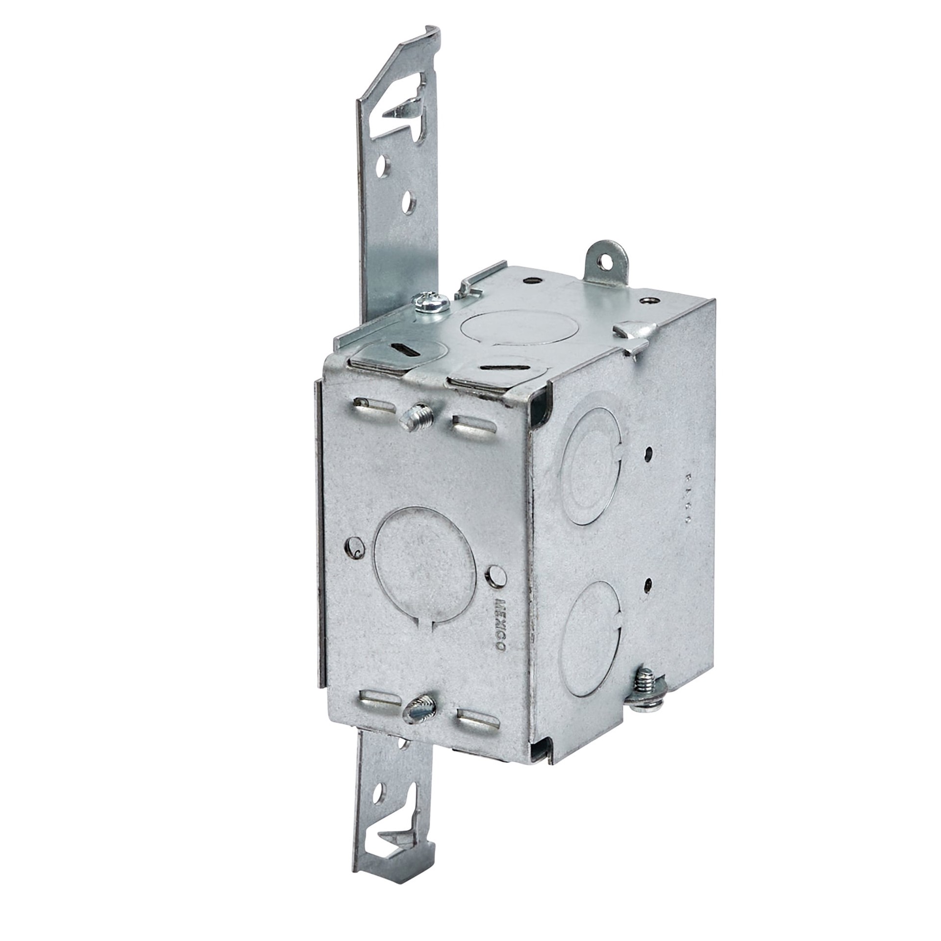 Three 1/2 in knockouts. 2-3/4 in depth. Gangable option. Bracket allows the box to mount on side of wood or metal stud. 14.0 cu in capacity. Equipped with AC/MC/Flex cable clamps.