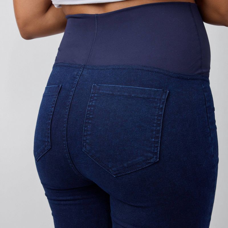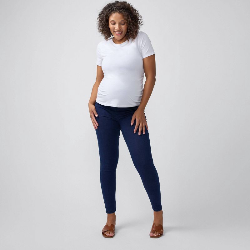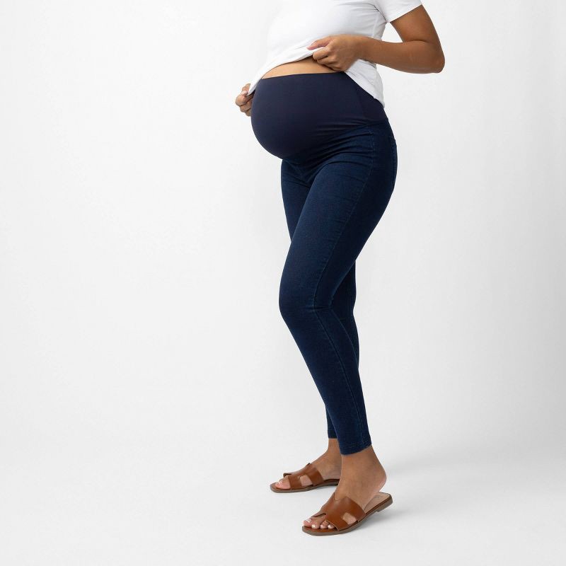 Wearing leggings is a pregnancy non-negotiable, but sometimes you need a pair that serves a little something more. Enter these jeggings. The dark indigo wash gives them an elevated, denim-like look, b…