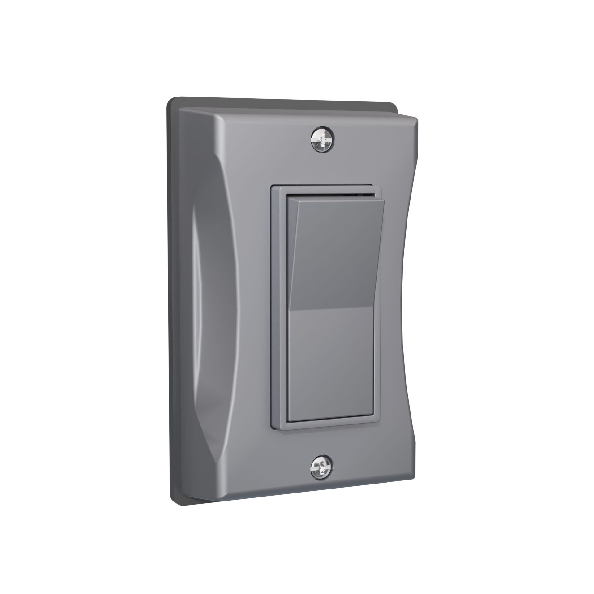 Die-cast aluminum with a polycarbonate switch. Convenient on/off rocker style switch that functions just like current indoor decorator style switches. Internal elastomer membrane provides weatherproof…