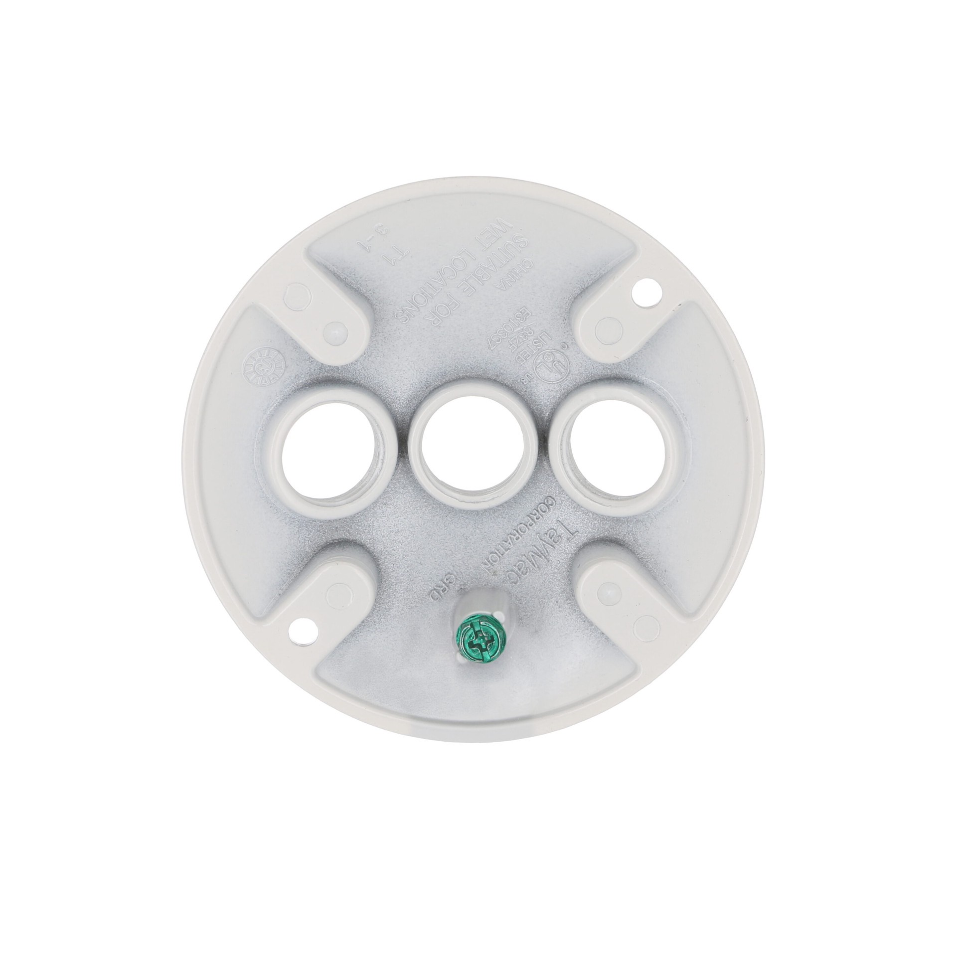 Rugged metallic construction with a durable powder coat finish. Easily mounts lampholder. Three 1/2 in Outlets. White finish. Gasket, closure plugs and mounting hardware included. NEMA 3R rated. cULus…