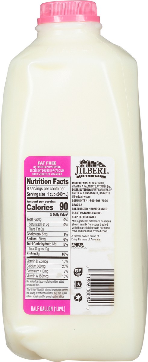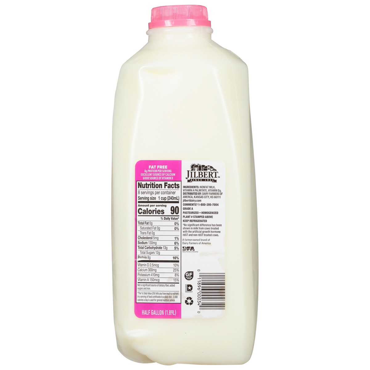 Jilbert Dairy Fat Free Milk is skim milk with vitamin A and vitamin D that's a wholesome choice for the entire family. This nonfat milk half gallon is high in calcium with vitamin D and includes 8 gra…