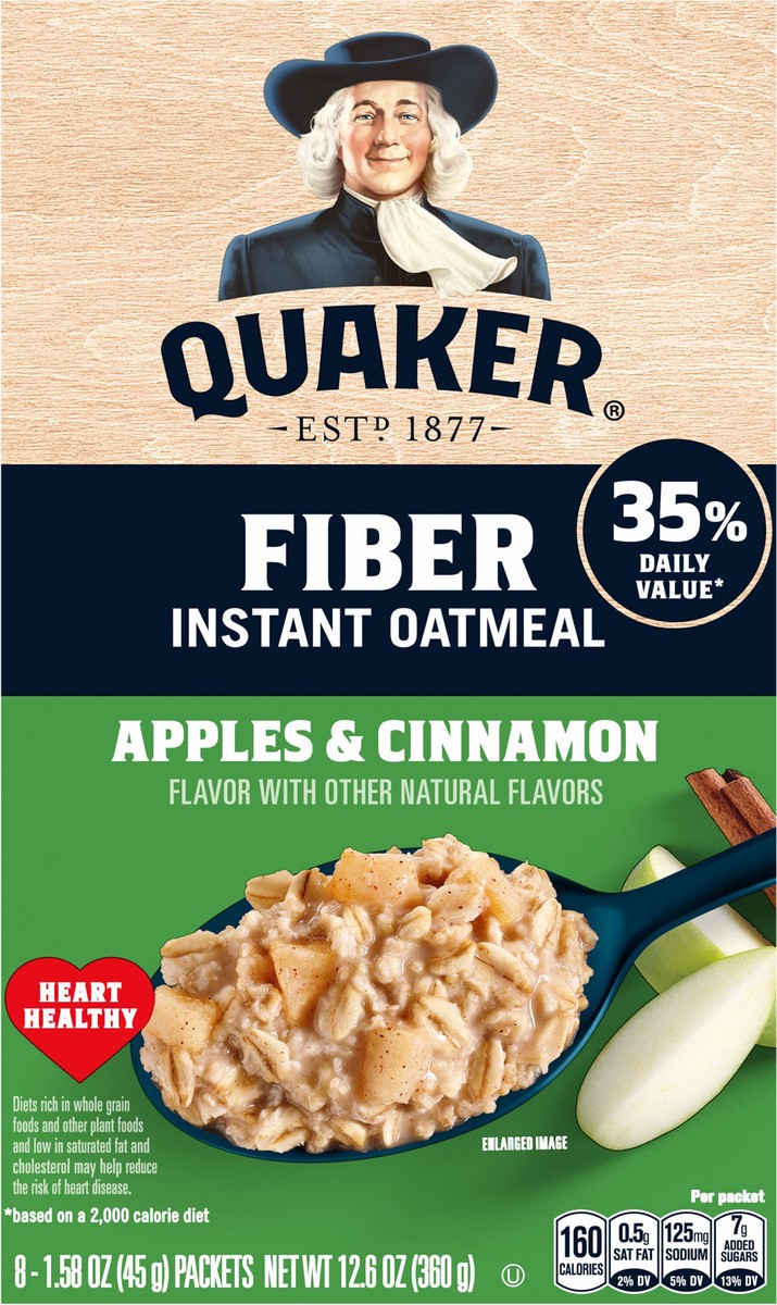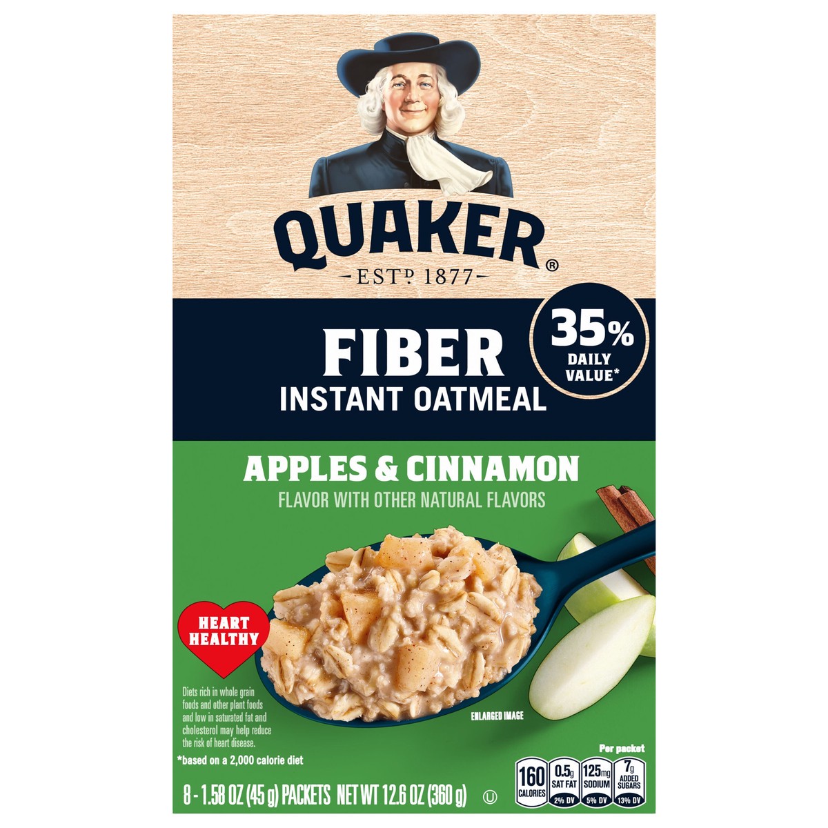 Quaker Instant Oatmeal Fiber Apples & Cinnamon, 1.58 oz, 8 Count
