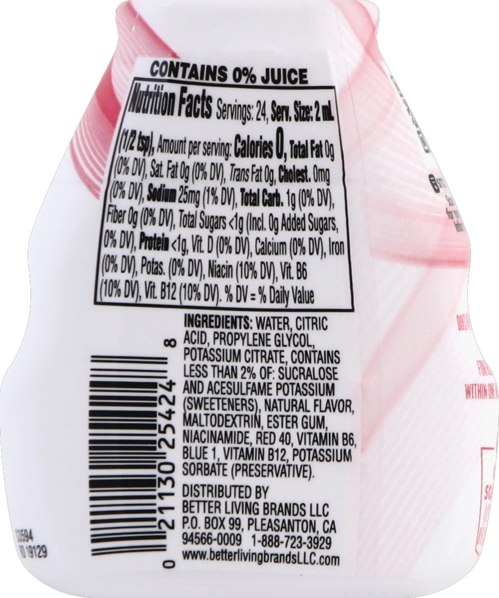 Naturally flavored with other natural flavors. Enhance with B vitamins. 0 calories per 1/2 tsp. 24 servings. Quality guaranteed. One squeeze (1/2 tsp) per 8 fl oz serving. Contains 0% juice. SmartLabe…