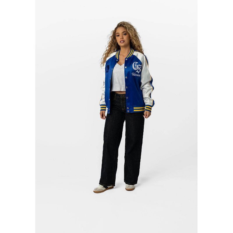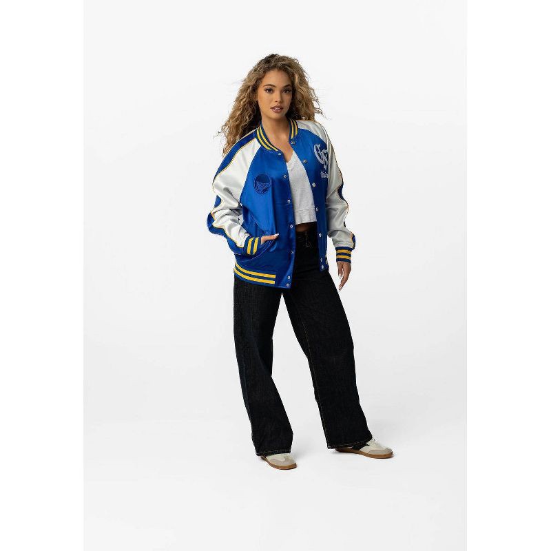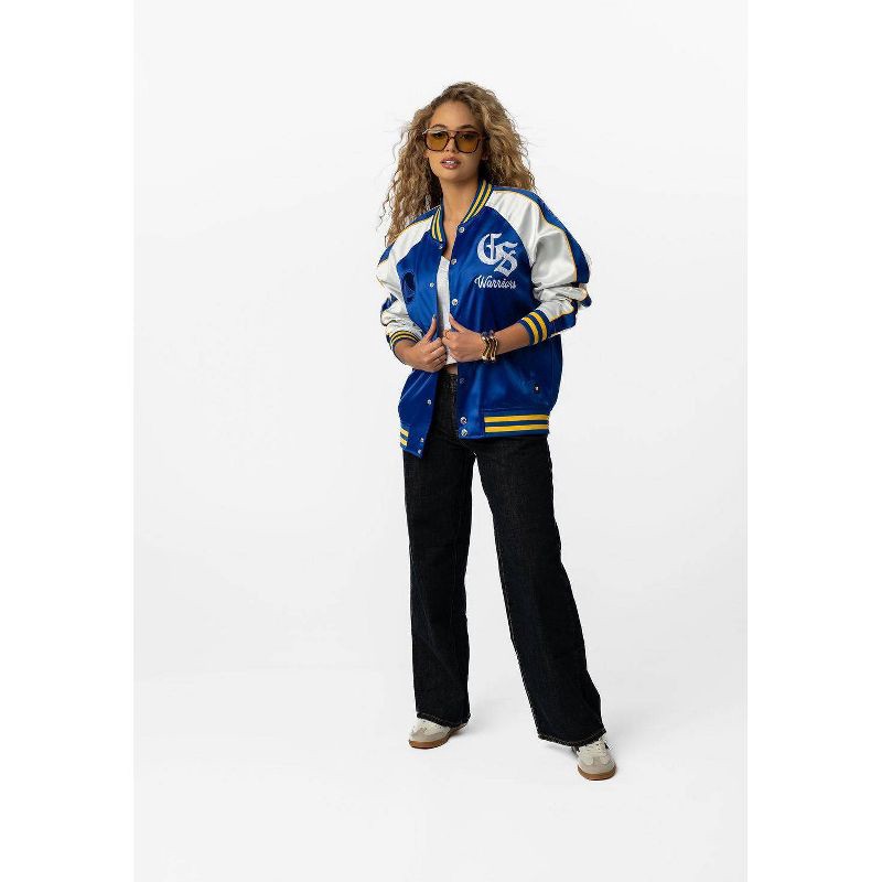 Step up your game-day look with the Golden State Warriors Satin Bomber. Featuring a smooth satin shell and lightweight lining, this jacket combines streetwear edge with all-day comfort. Bold Warriors …