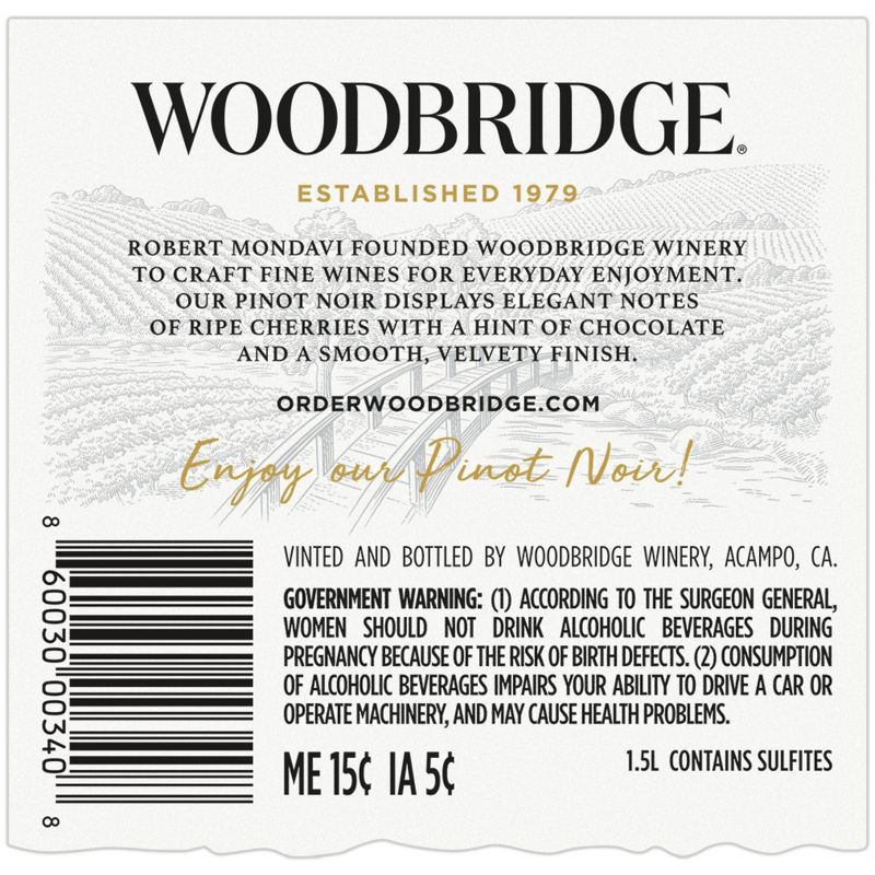 - One 1.5L bottle of Woodbridge Pinot Noir Red Wine, equal to two standard 750ml bottles