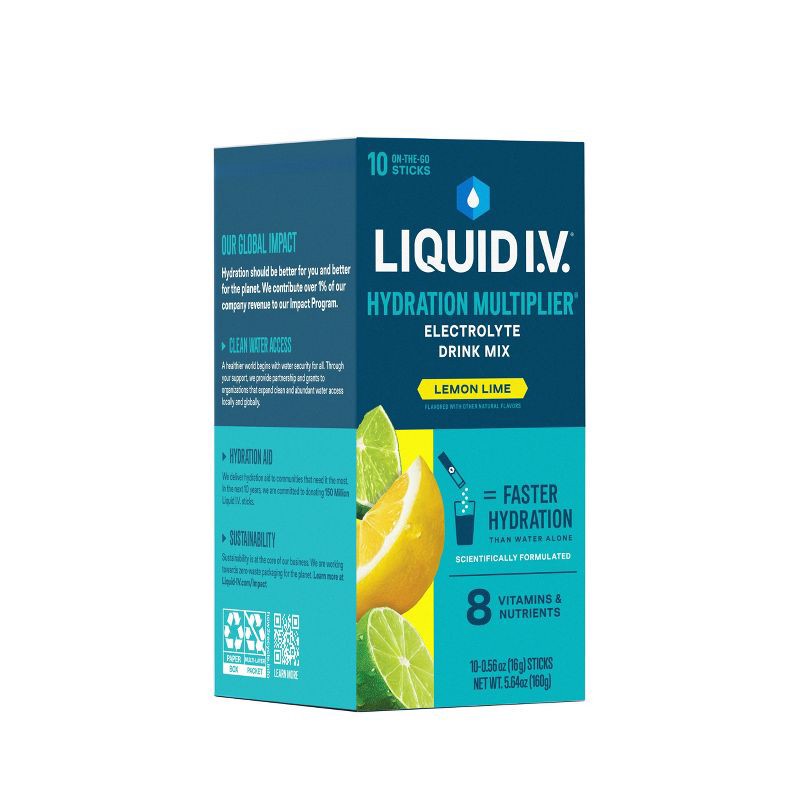 Liquid I.V. Hydration Multiplier Vegan Powder Electrolyte Supplements - Lemon Lime - 0.56oz each/10ct