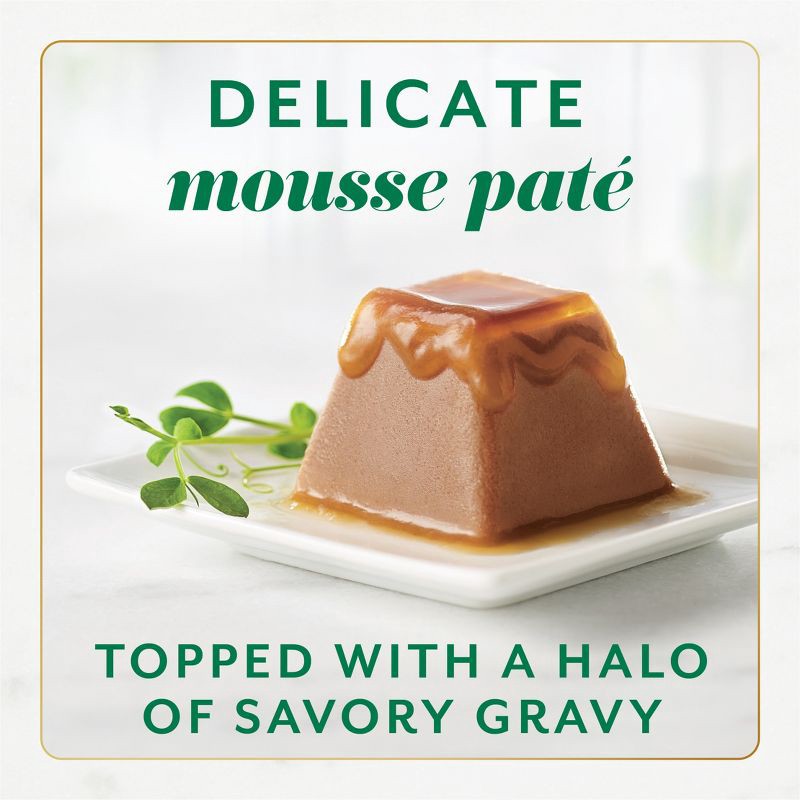 - Spectacular layered creations crafted with delicious real chicken or beef mousse pate cat food topped with a halo of savory gravy