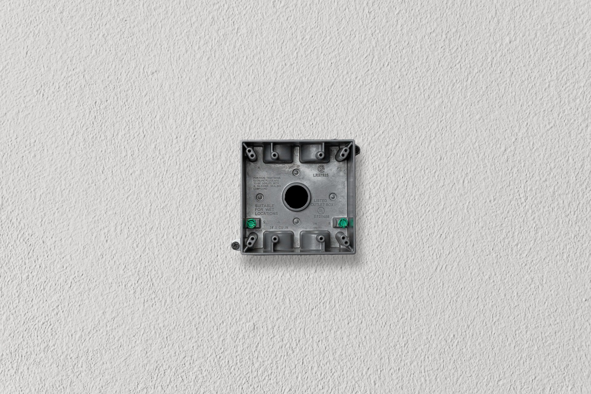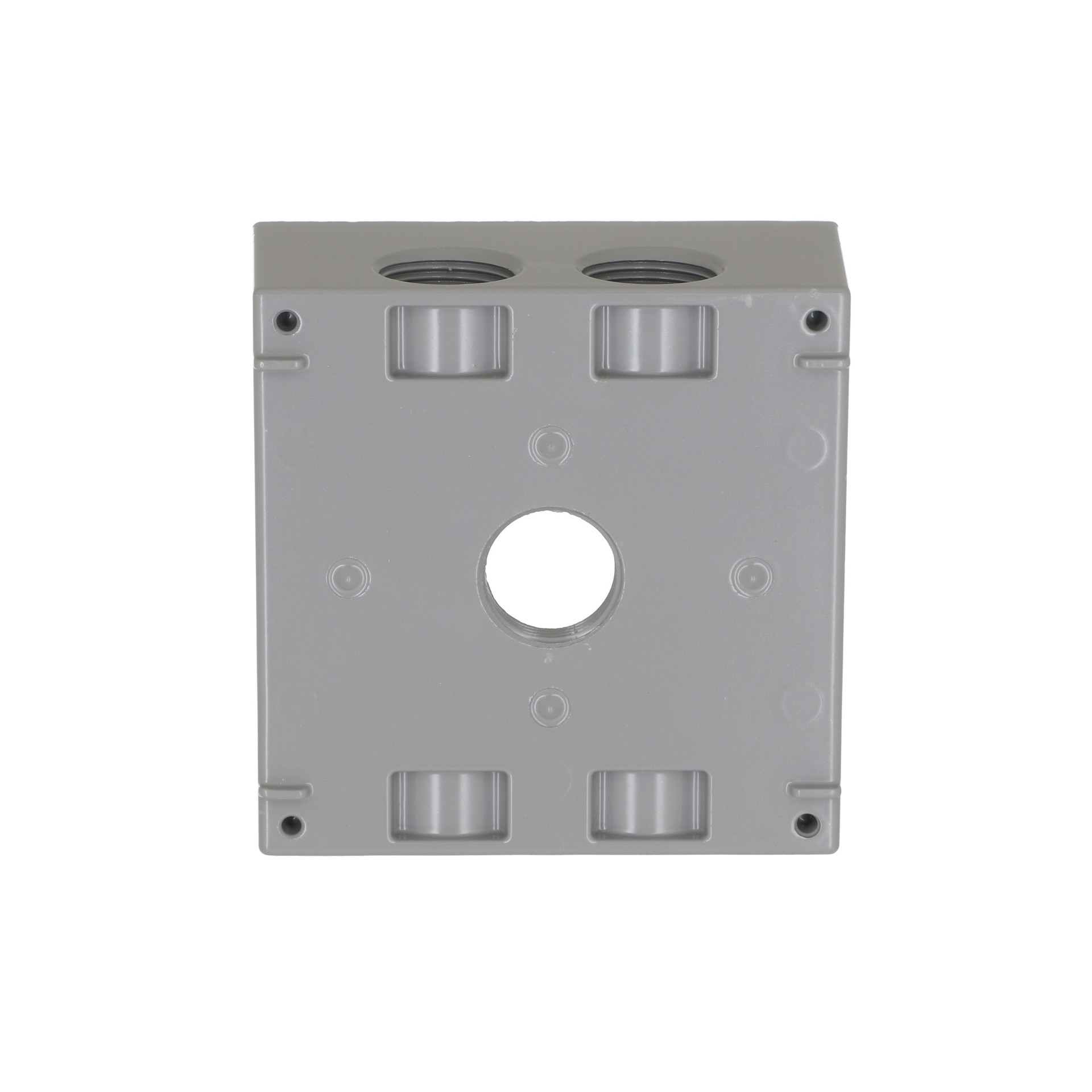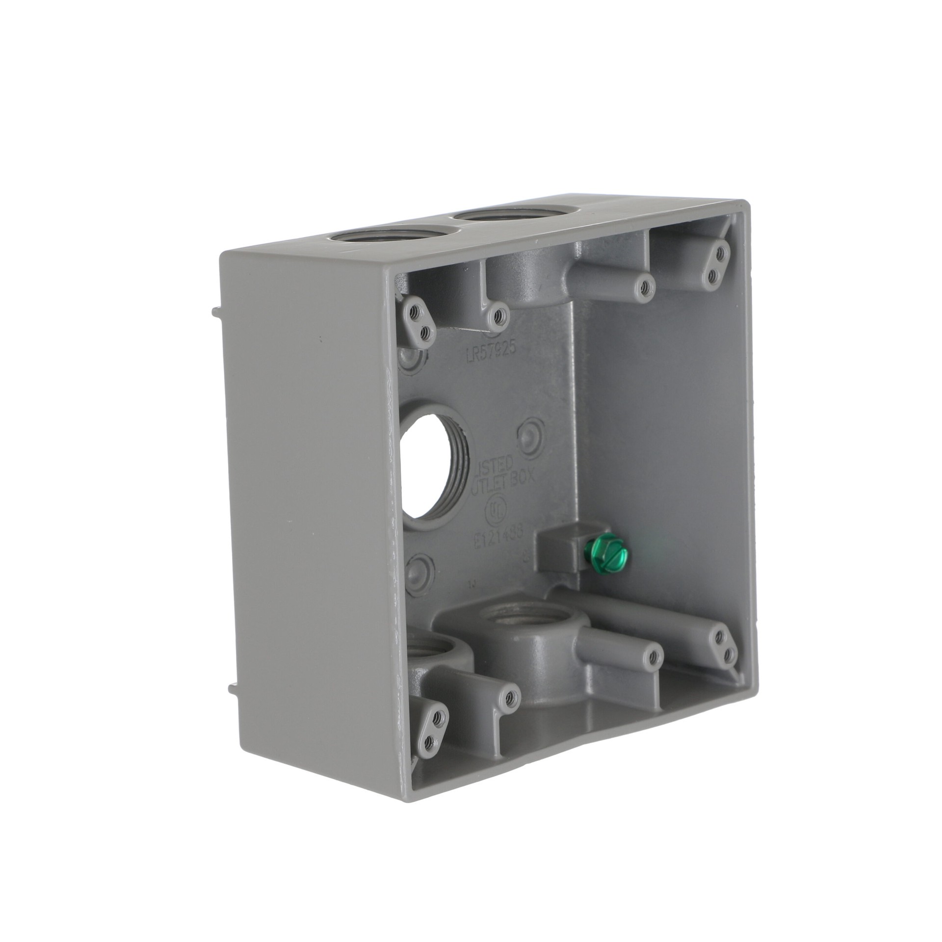 Die-cast aluminum construction. Durable powder coat finish. Includes mounting lugs. 31.0 cu in capacity. Five 3/4 in threaded outlets. NEMA 3R rated. cULus Listed.