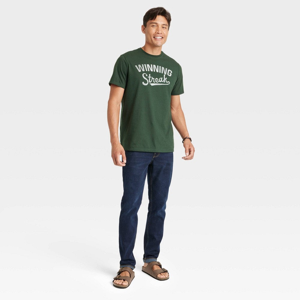 Revamp your casualwear with the Short-Sleeve Graphic T-Shirt from Goodfellow & Co. This jersey T-shirt is made of a soft cotton blend to keep you comfortable all day long, while a graphic design acros…