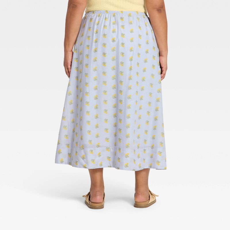 Women's Midi A-Line Skirt - Universal Thread™ Light Blue Floral XXL