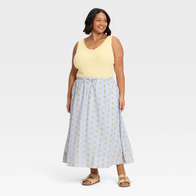Make a breezy style statement on casual occasions with this Midi A-Line Skirt from Universal Thread™. This A-line skirt is made of cotton woven fabric with lining for comfortable wear throughout the d…