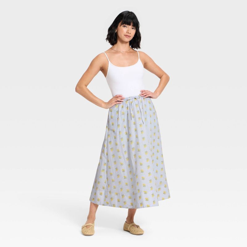 Make a breezy style statement on casual occasions with this Midi A-Line Skirt from Universal Thread™. This A-line skirt is made of cotton woven fabric with lining for comfortable wear throughout the d…