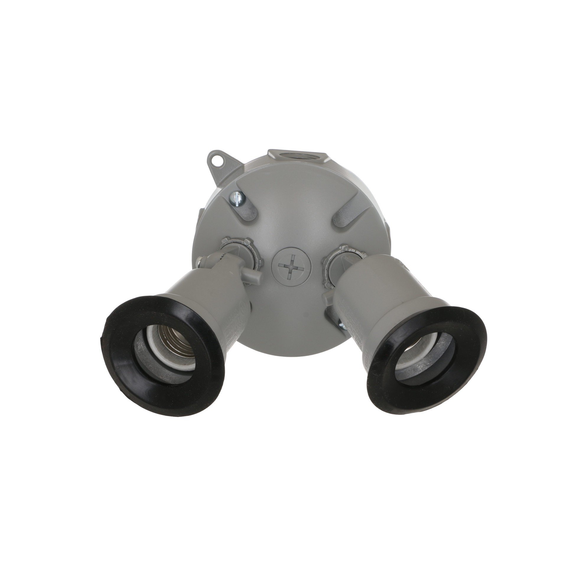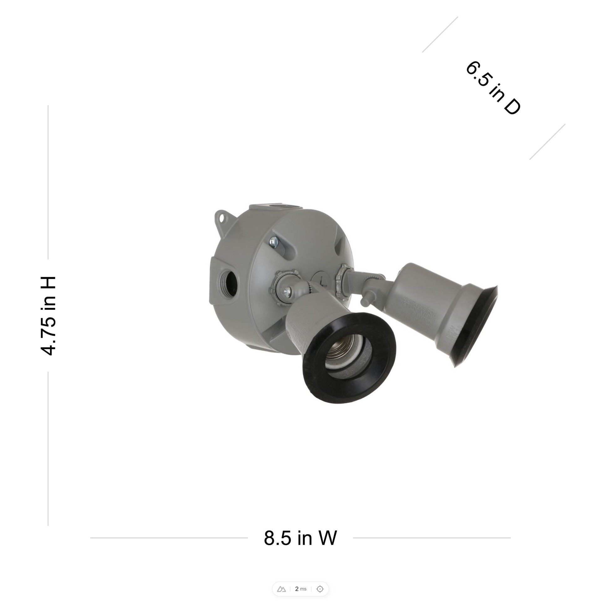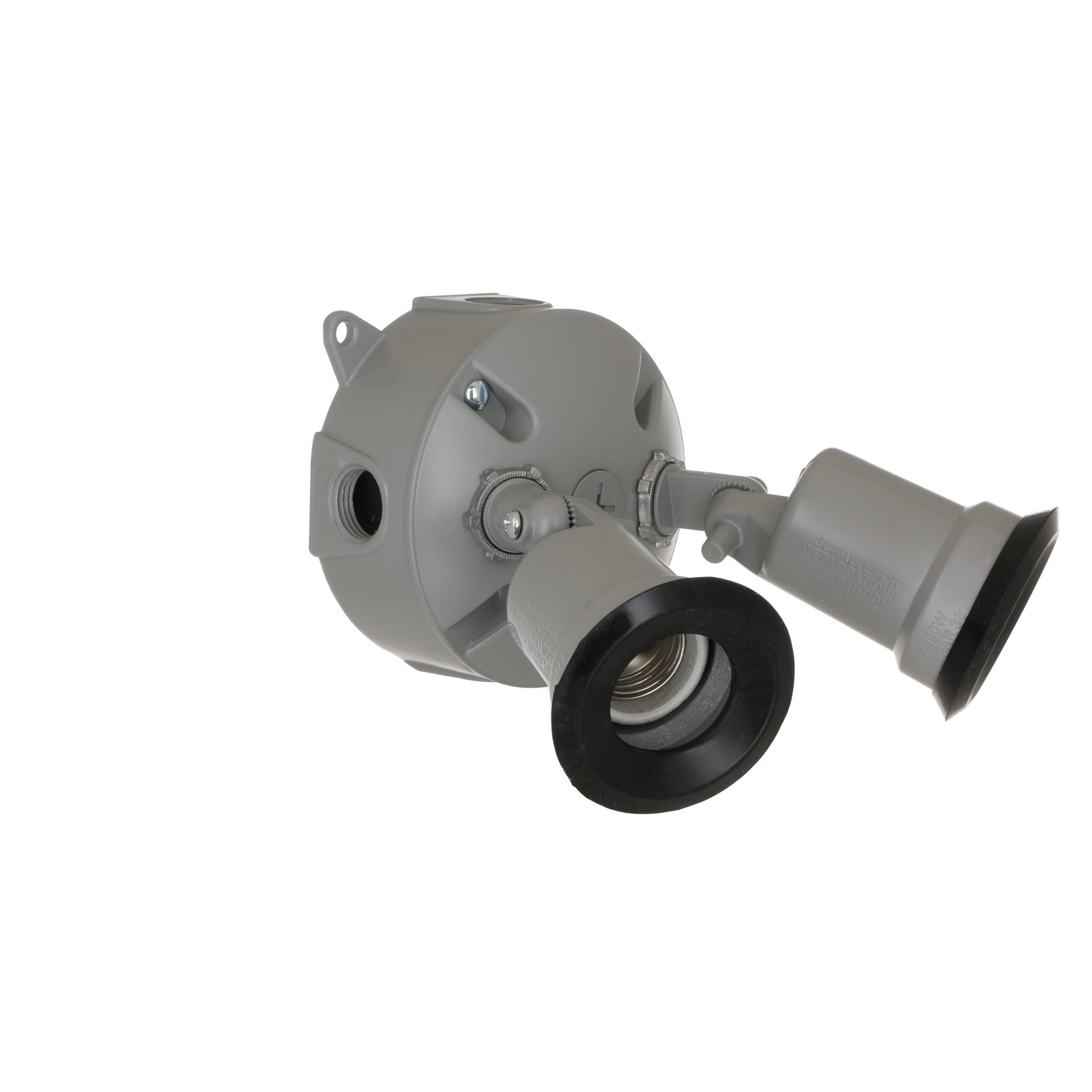 Rugged die-cast construction. Durable powder coat finish. Includes 2-lampholders, round cover, box and installation hardware.