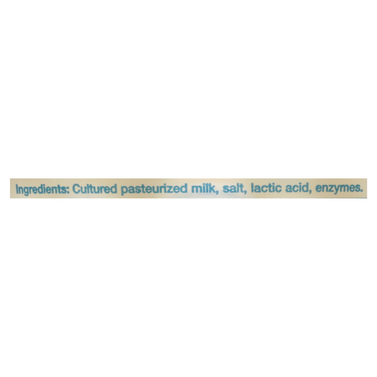 Cultured Pasteurized Milk, Salt, Lactic Acid, Enzymes.