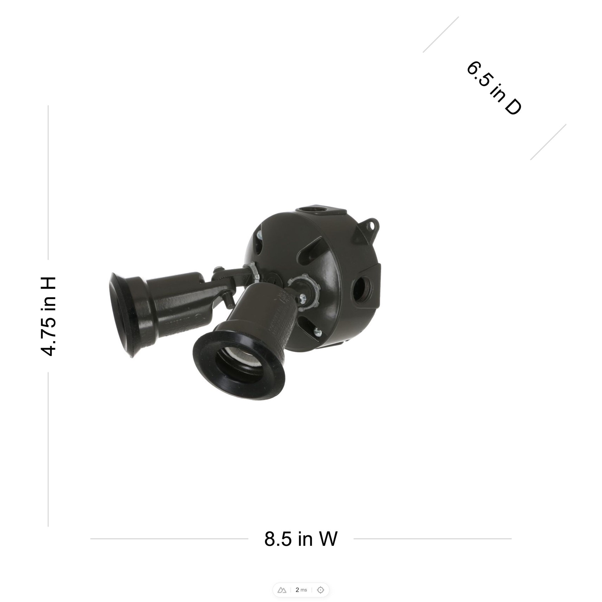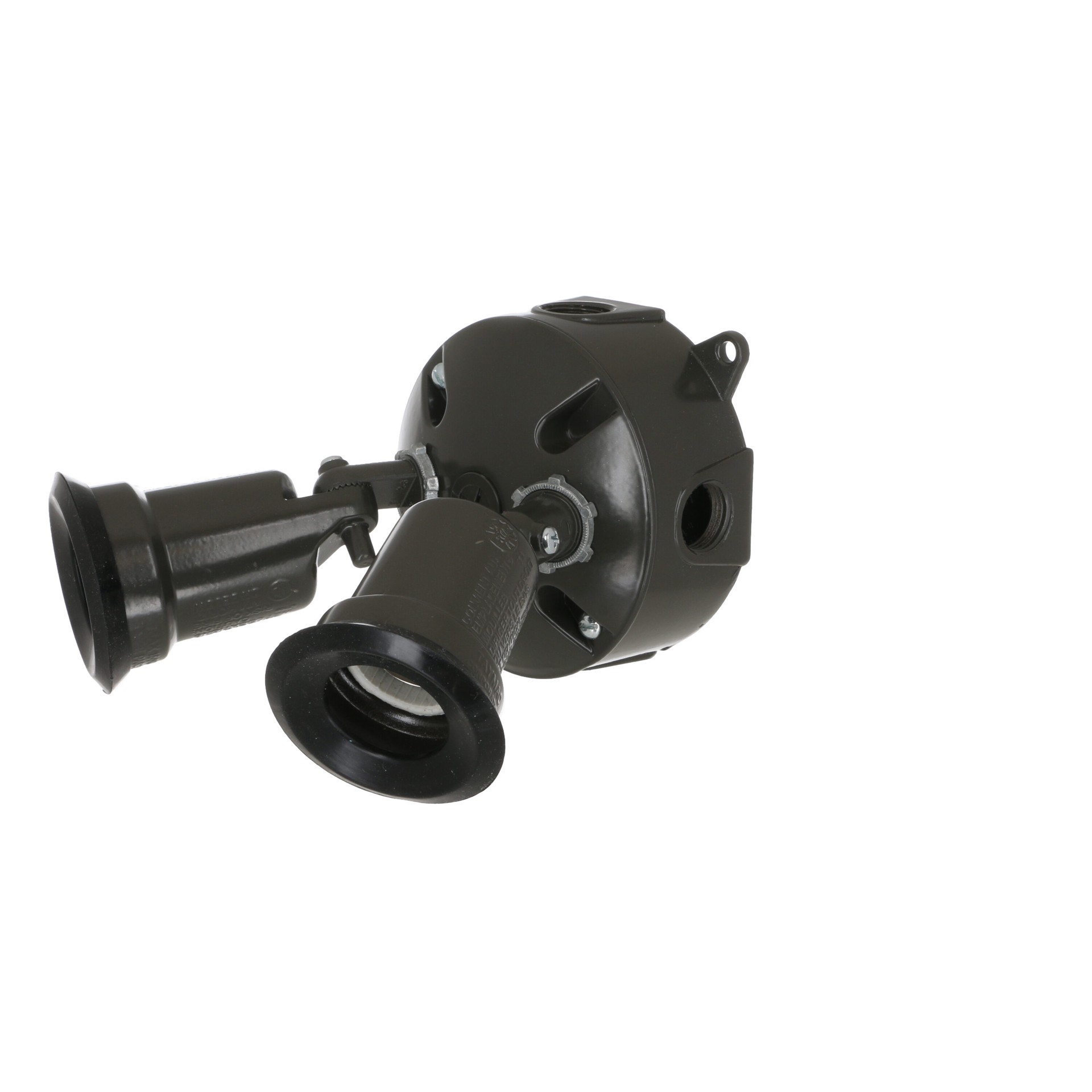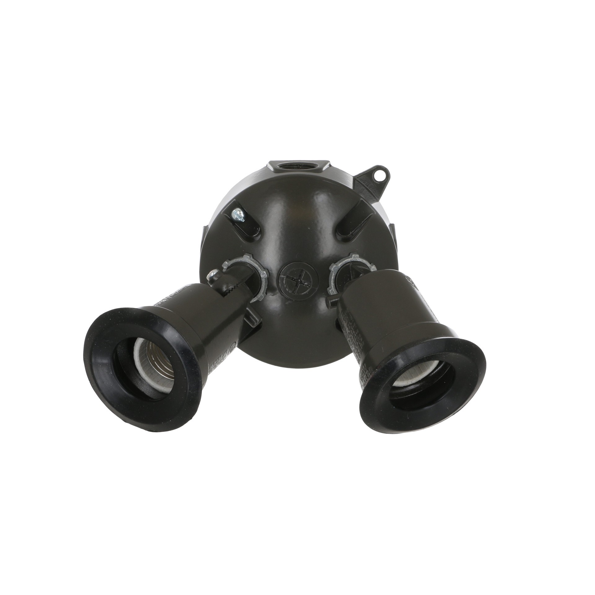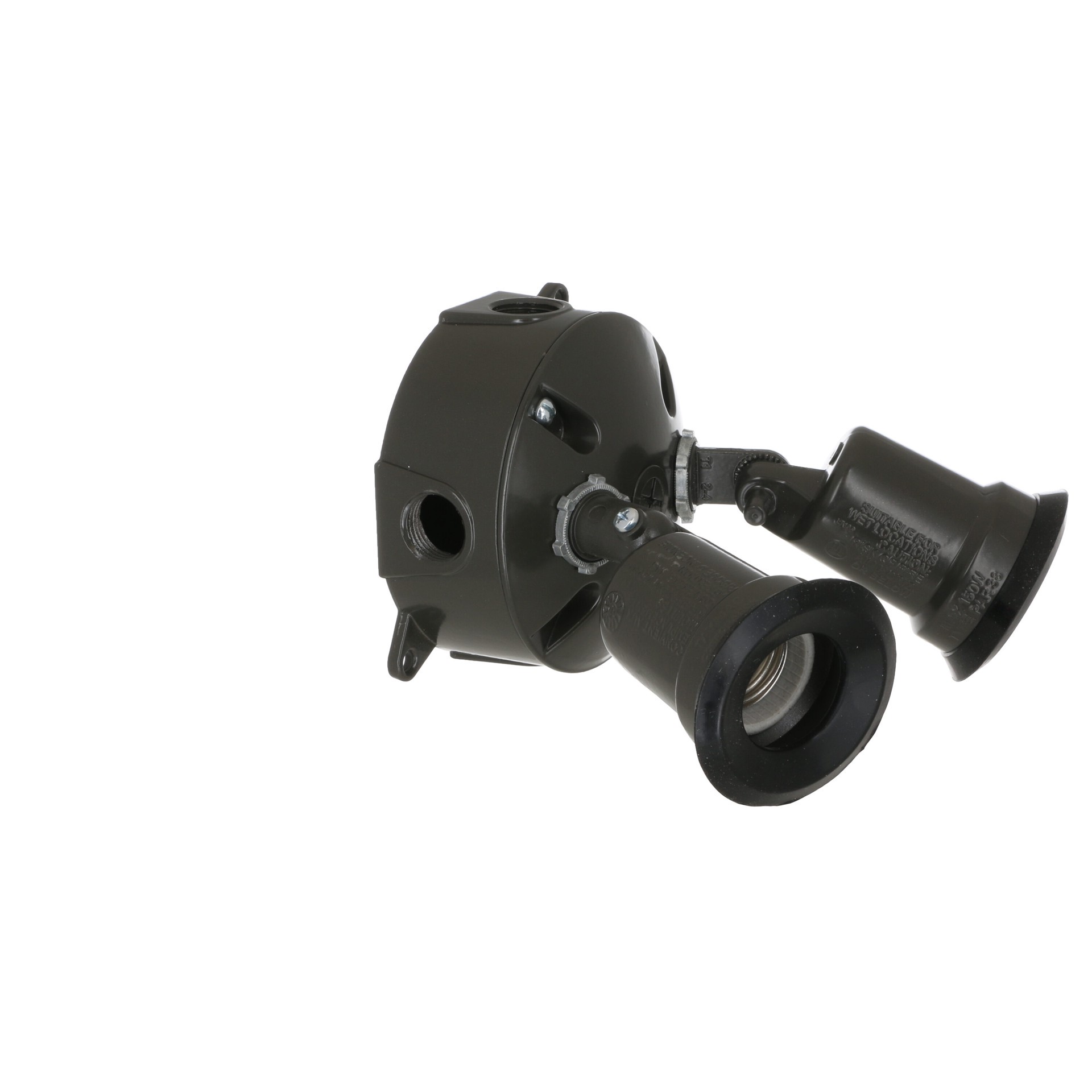 Rugged die-cast construction. Durable powder coat finish. Includes 2-lampholders, round cover, box and installation hardware.