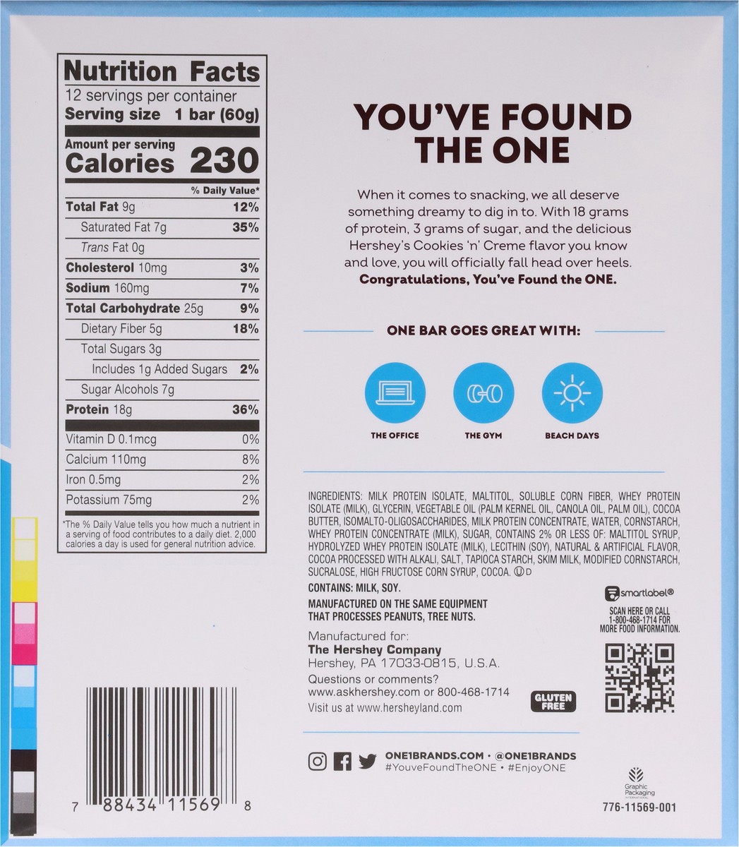 ONE Hershey's Cookies 'n' Creme Protein Bar - 12 x 2.12 oz Bars