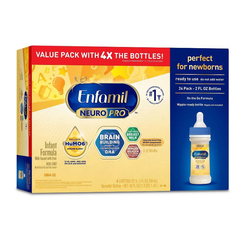 Enfamil NeuroPro Ready to Feed Infant Formula Bottles - 2 fl oz Each/24ct: Non-GMO, Gluten-Free, Added Prebiotics