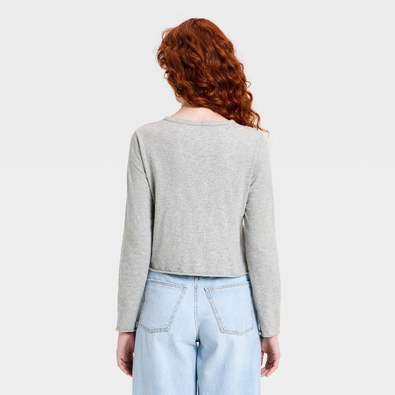 Women's Long Sleeve Cotton Henley Shirt - Universal Thread™ Heather Gray XL