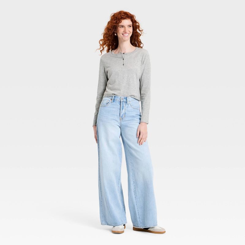 Freshen up your wardrobe staples with the Women's Long Sleeve Cotton Henley Shirt from Universal Thread™. A classic staple for any closet, this 100% cotton henley features a crew neckline with a front…