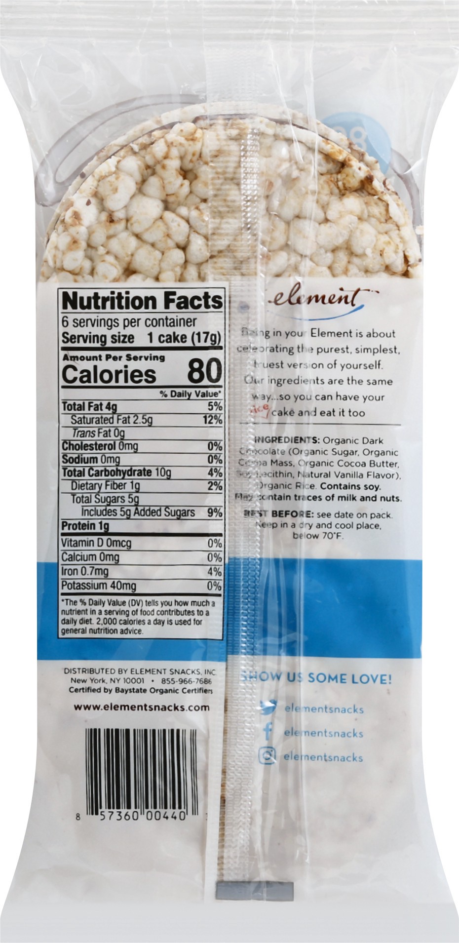 Element S Rice Cake Dk Chocolate Organic - 3.5 Oz